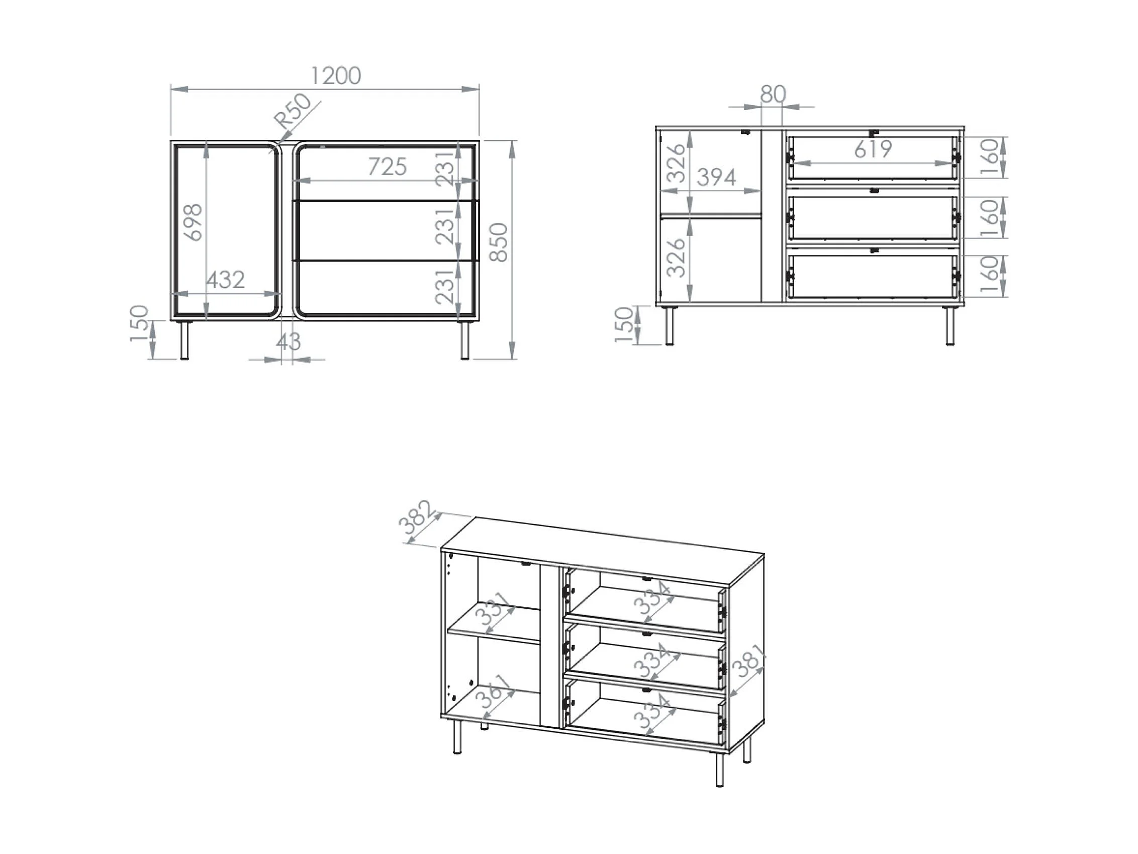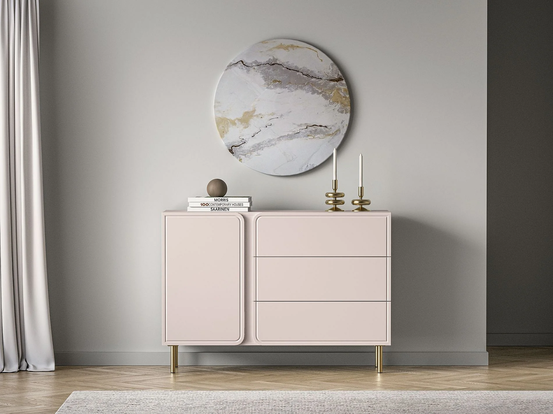 Buffet 1 porte avec 3 tiroirs - beige cachemire 120 cm - LOPPA