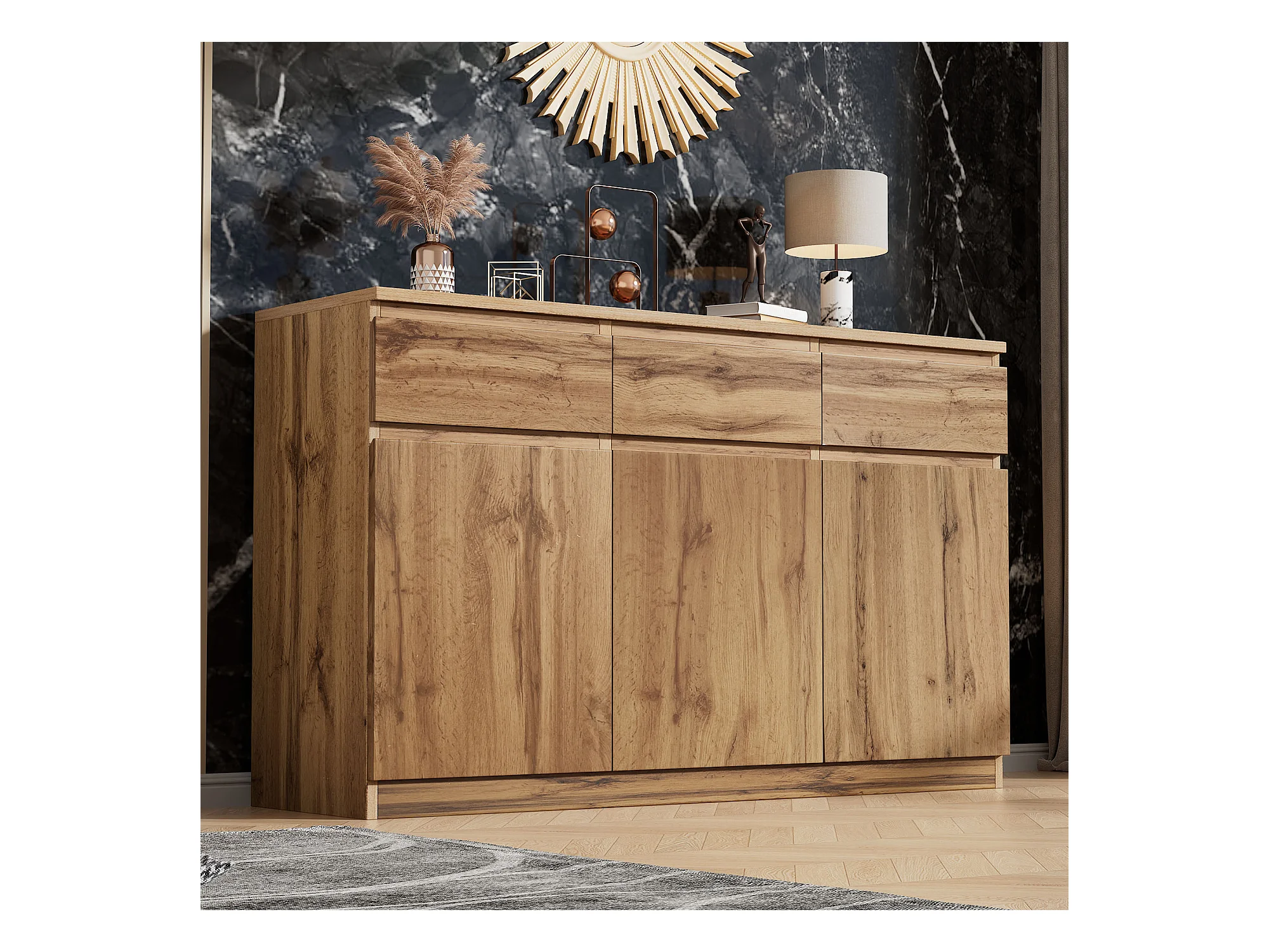 Buffet 135x40x81cm avec 3 tiroirs et 3 portes, corps en bois naturel clair