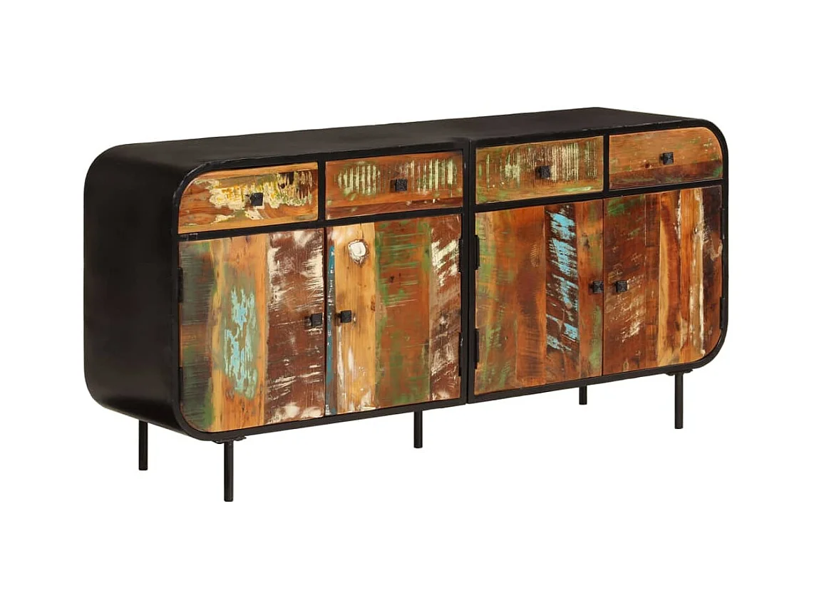 Buffet 140x35x70 cm bois massif de récupération et métal
