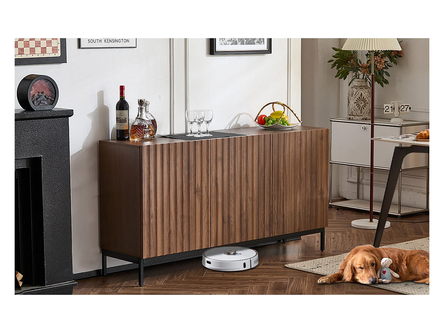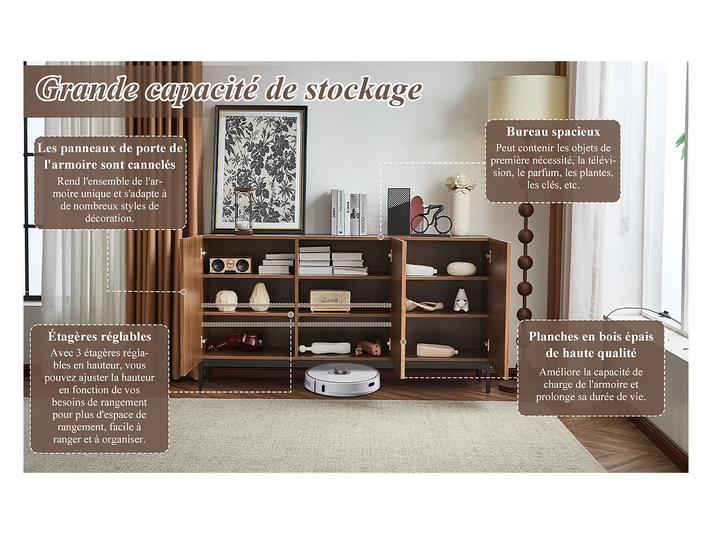 Buffet 150 x 40 x 80 cm en chêne foncé, 3 portes, design 3D ondulé, étagères réglables et sécurité anti-basculement – Salon et salle à manger