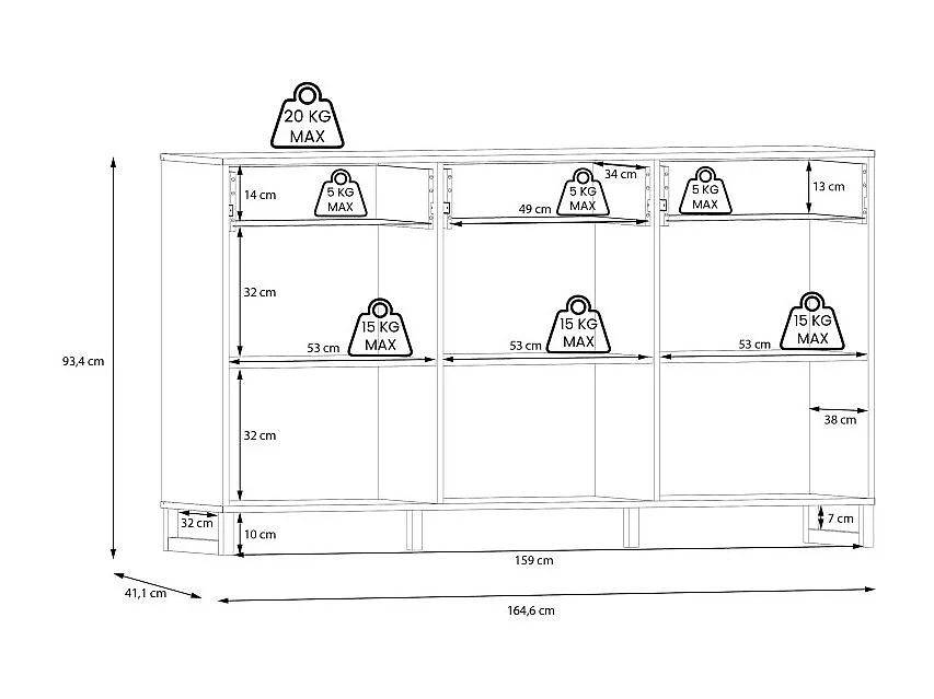 Buffet 165 cm décor gris clair mat et poignées métal noir - ASTORIA