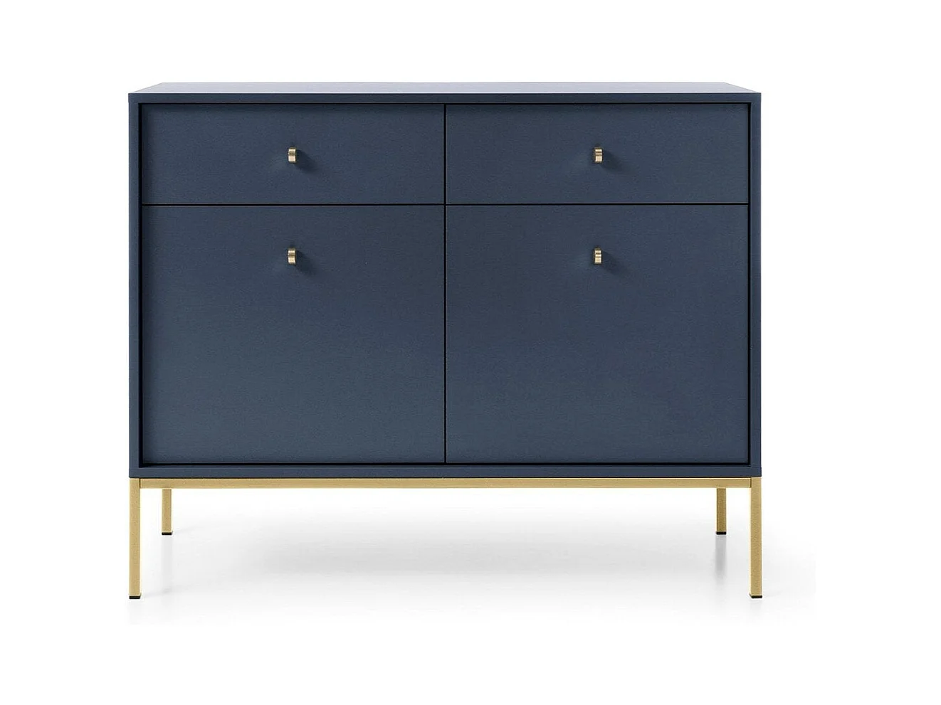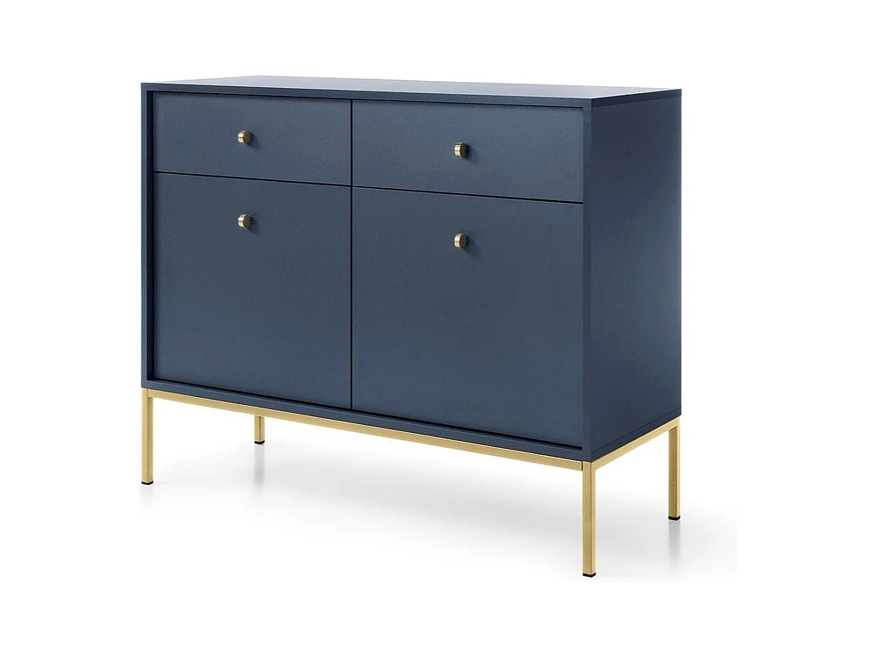 Buffet 2 portes, 2 tiroirs avec pieds en métal doré, 104x83 cm