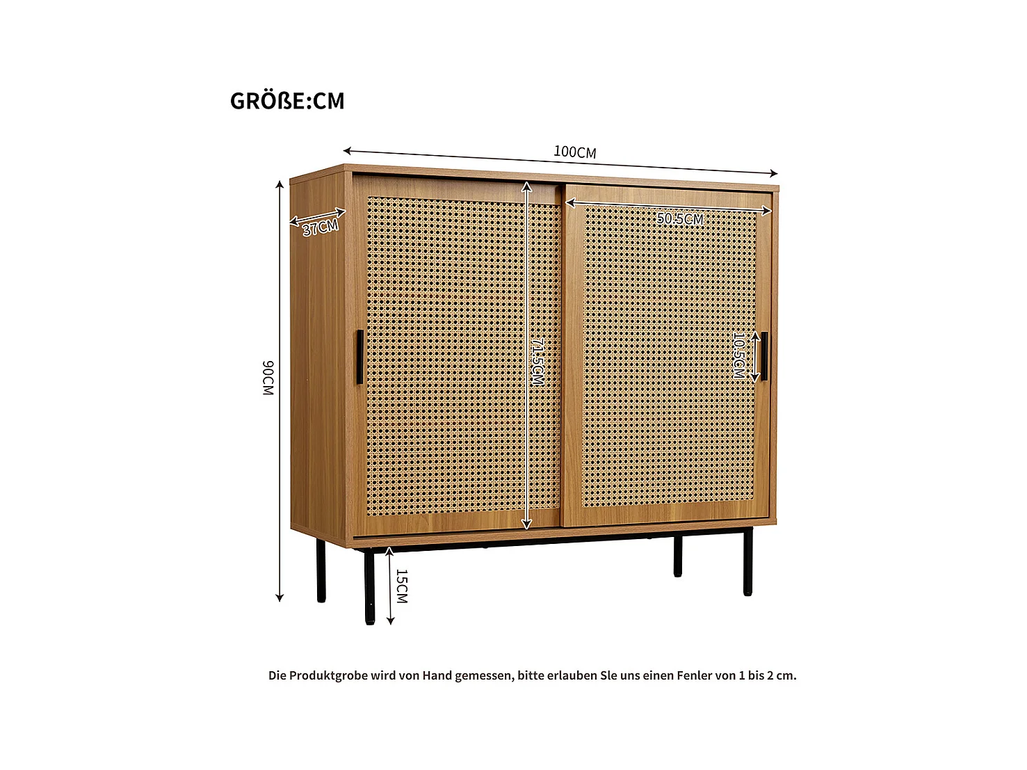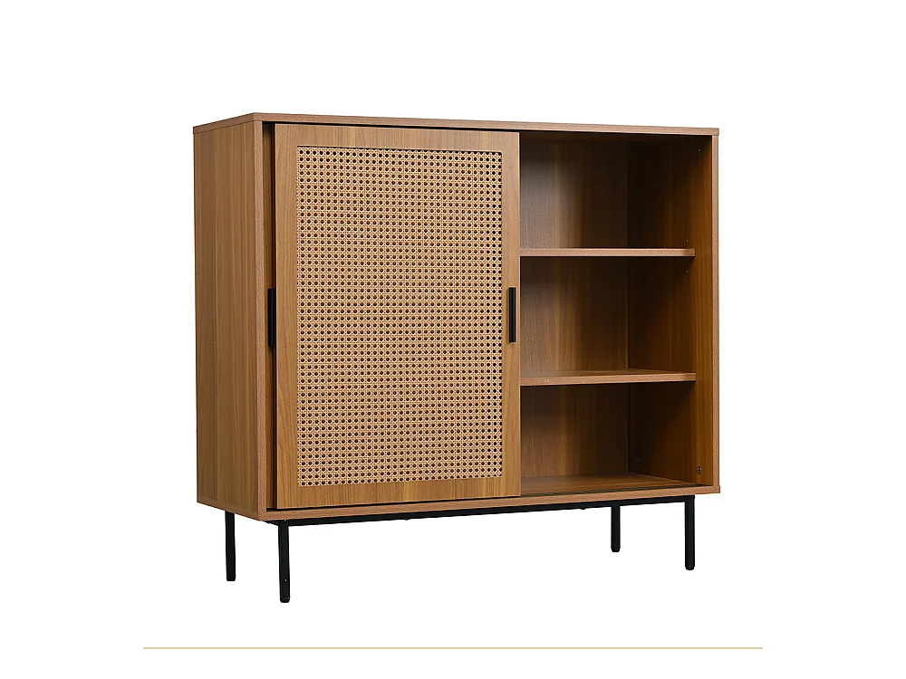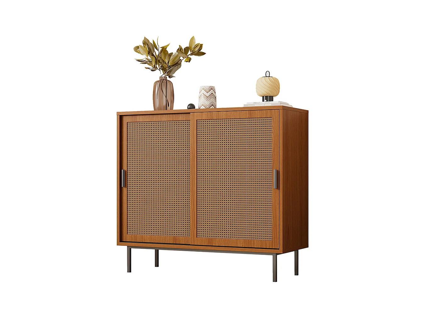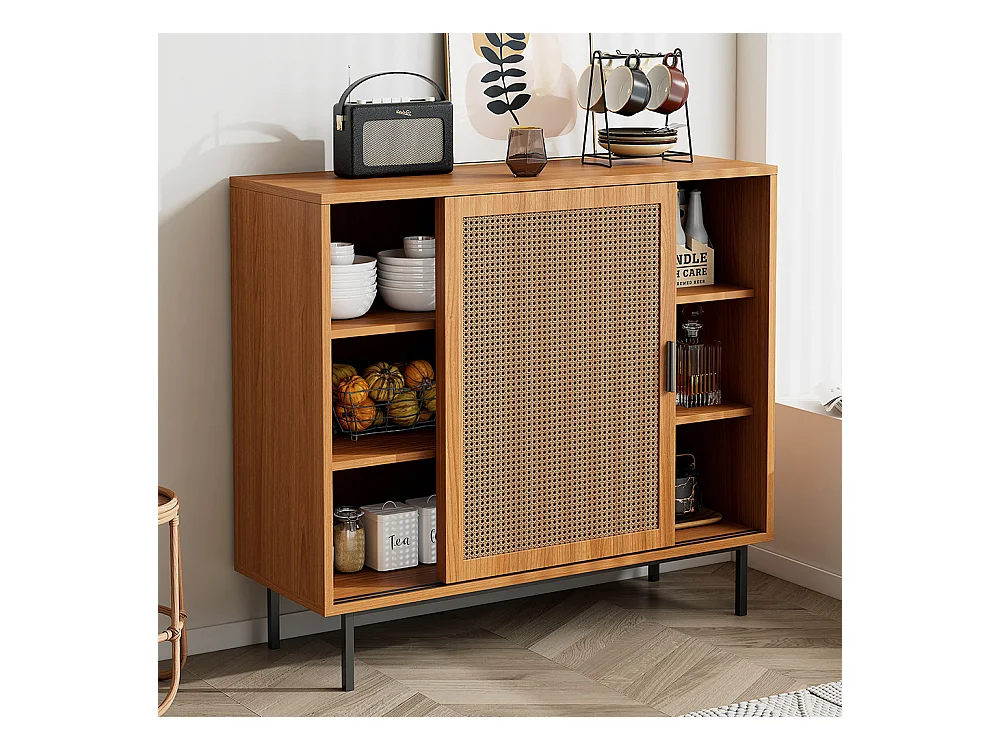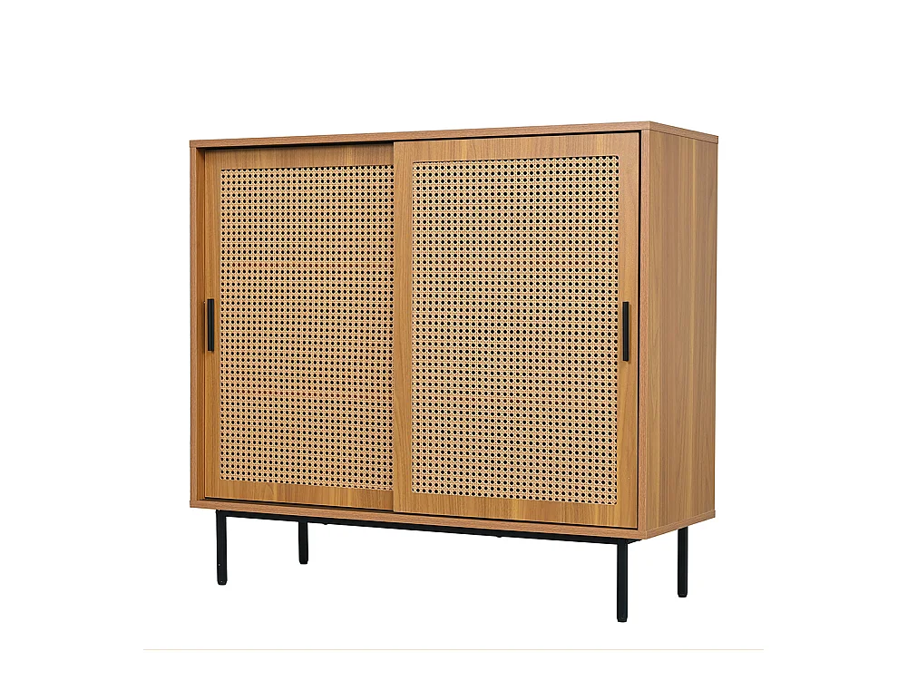 Buffet en bois avec portes en rotin et portes coulissantes en verre - 60x40x100 cm