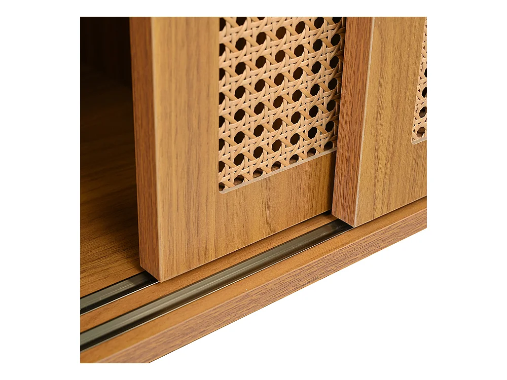 Buffet naturel avec 2 portes en rotin et 1 tiroirs en MDF - 120x40x80 cm