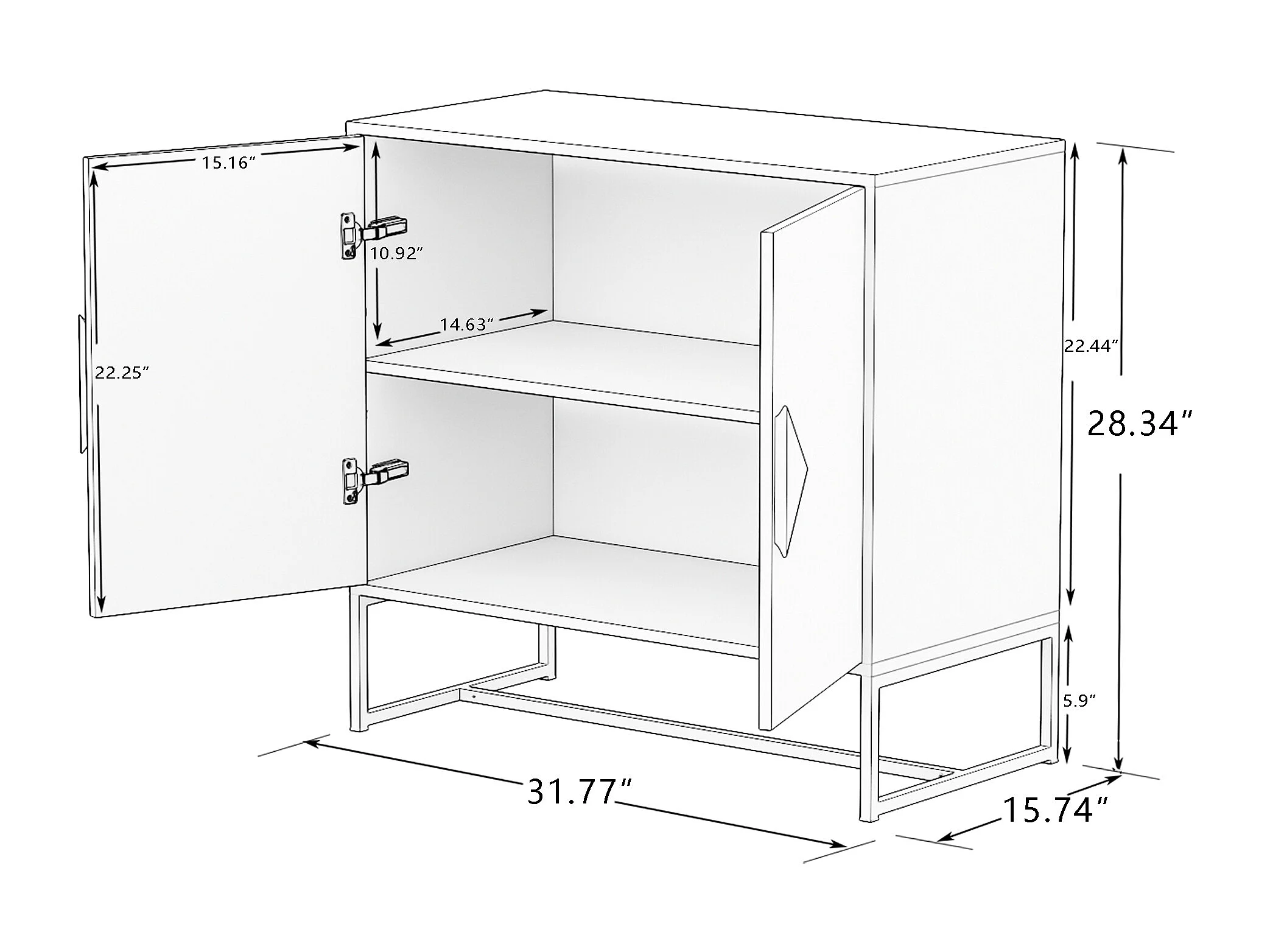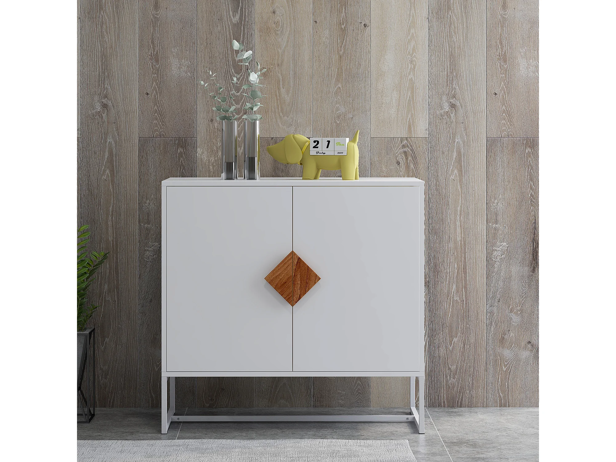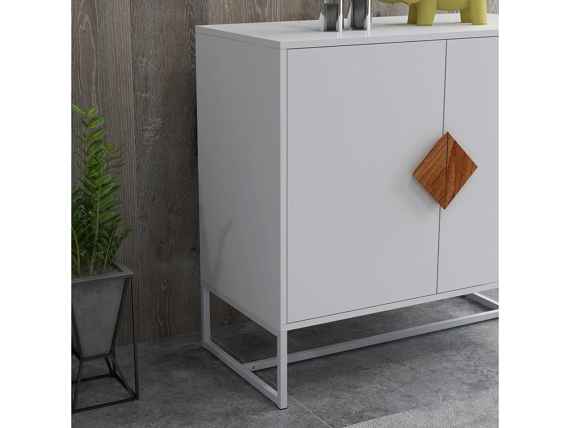 Buffet 2 portes en bois massif avec poignées carrées – Meuble de rangement élégant pour salon, salle à manger ou cuisine
