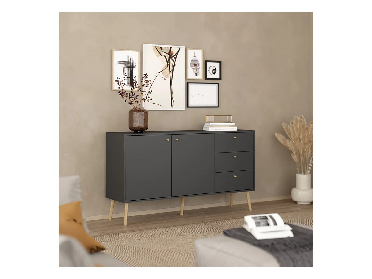 Buffet 2 portes et 3 tiroirs avec pieds en bois L147,2 cm - TARP