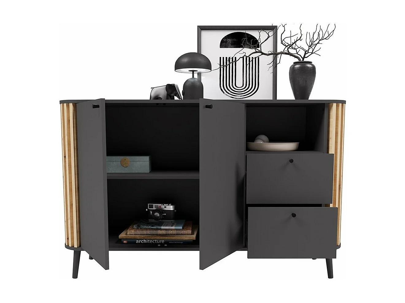 Buffet 2 tiroirs, 2 portes et 1 niche L138 cm - PURE