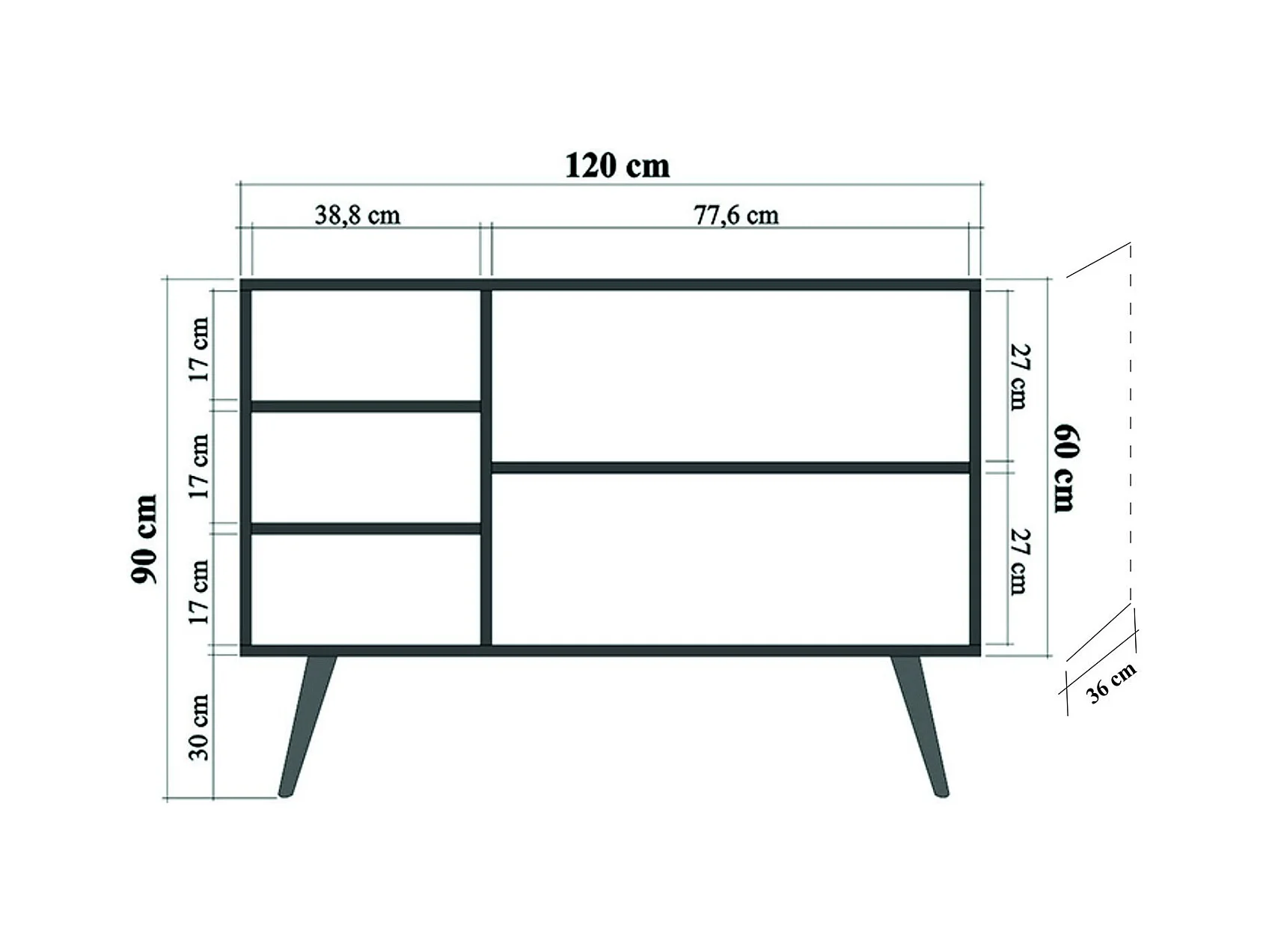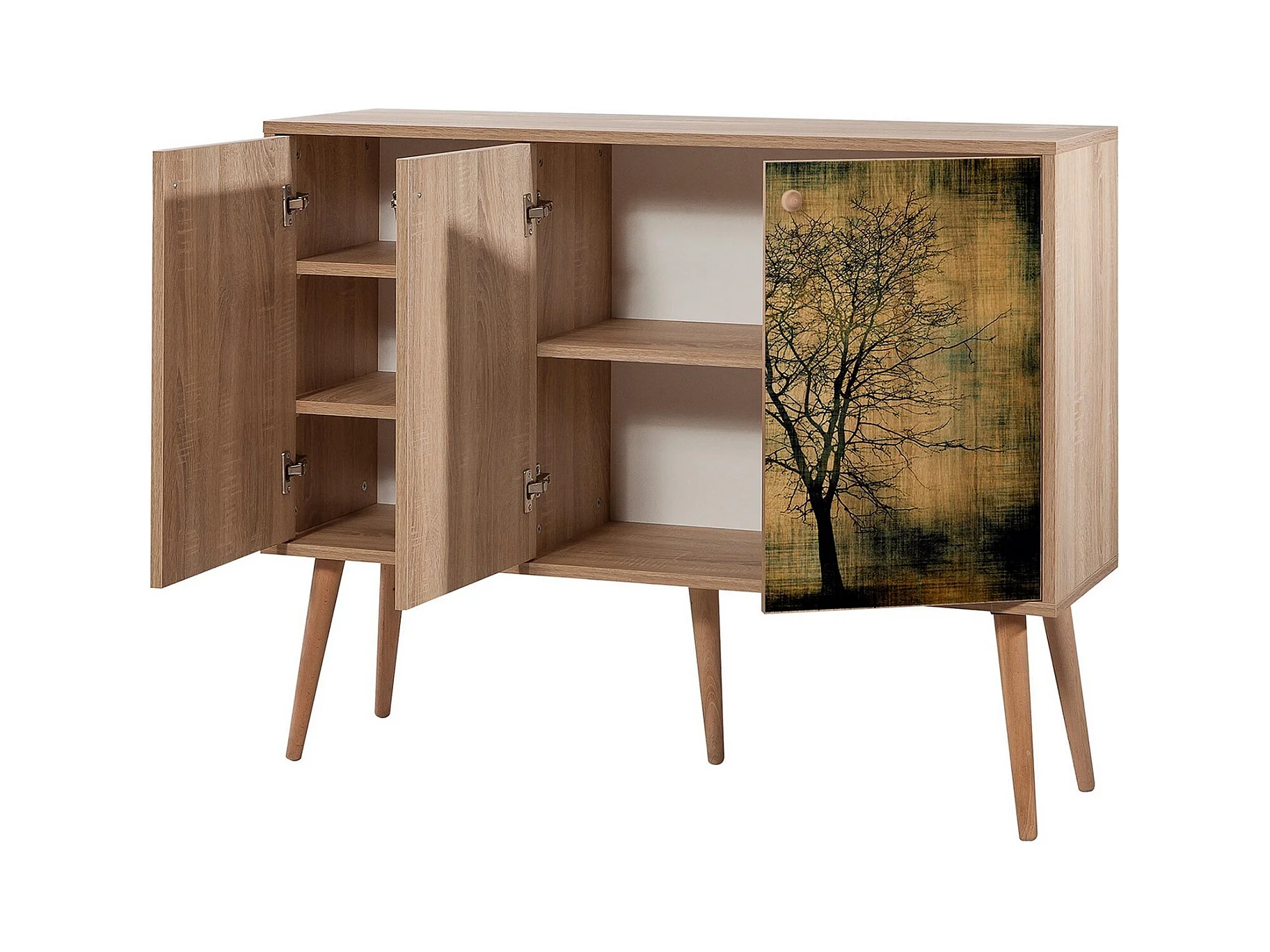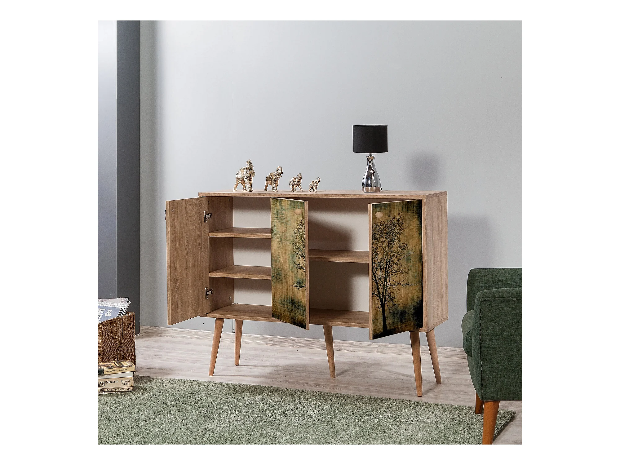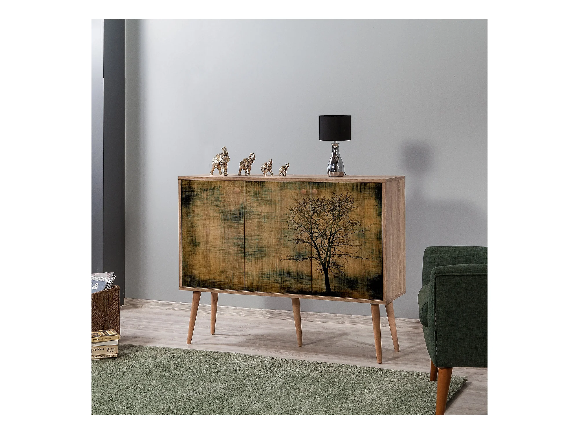 Buffet 3 portes Areva 120x90cm Motif Arbre Bois Naturel et Marron