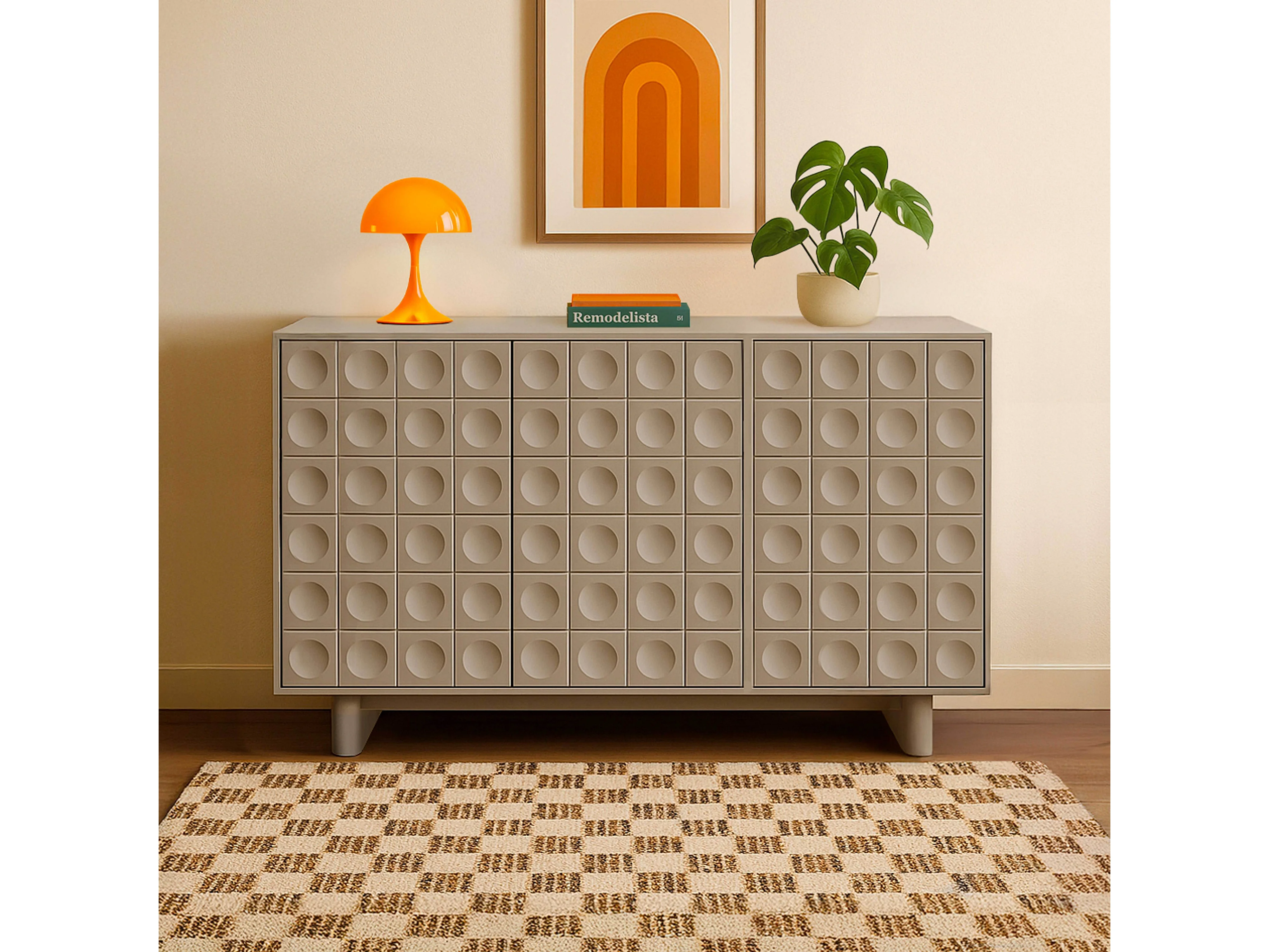 Buffet 3 portes moderne rectangulaire L124 cm beige