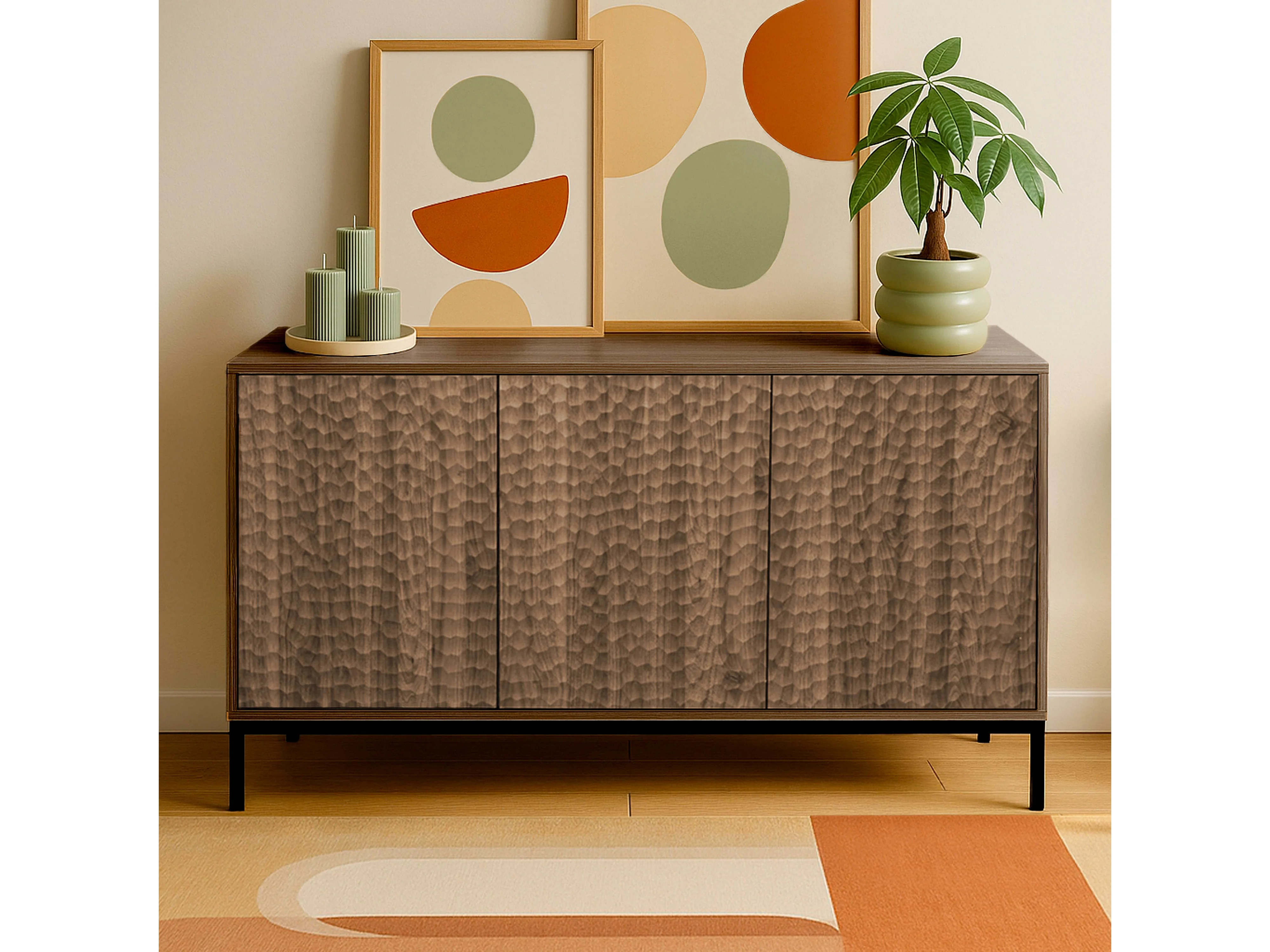 Buffet 3 portes moderne rectangulaire L147 cm bois foncé