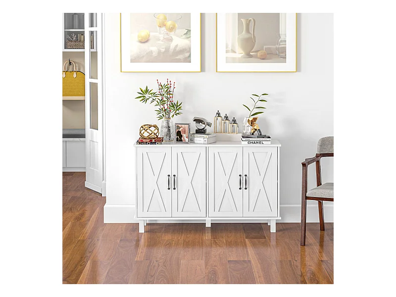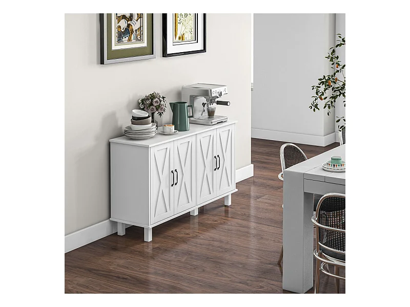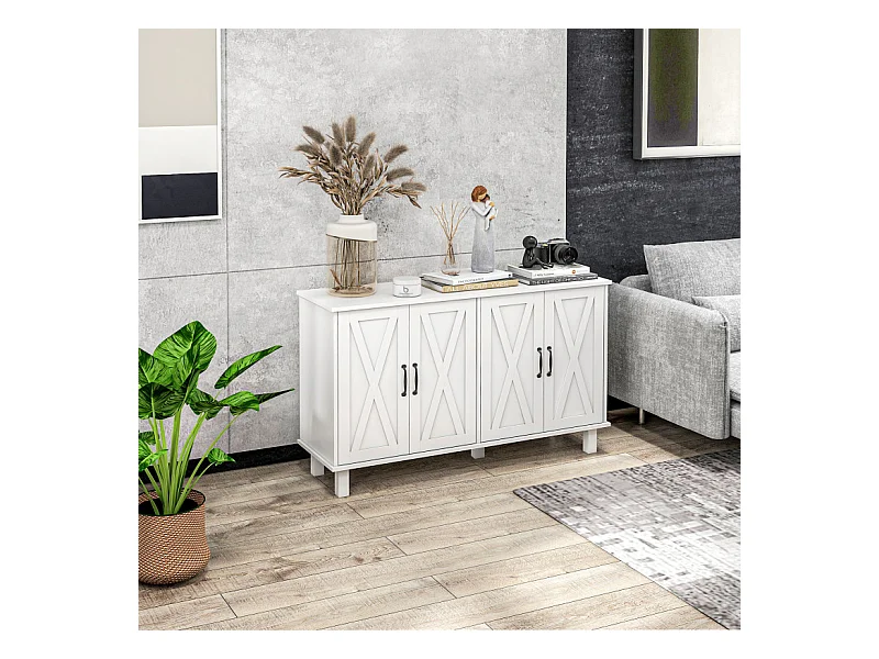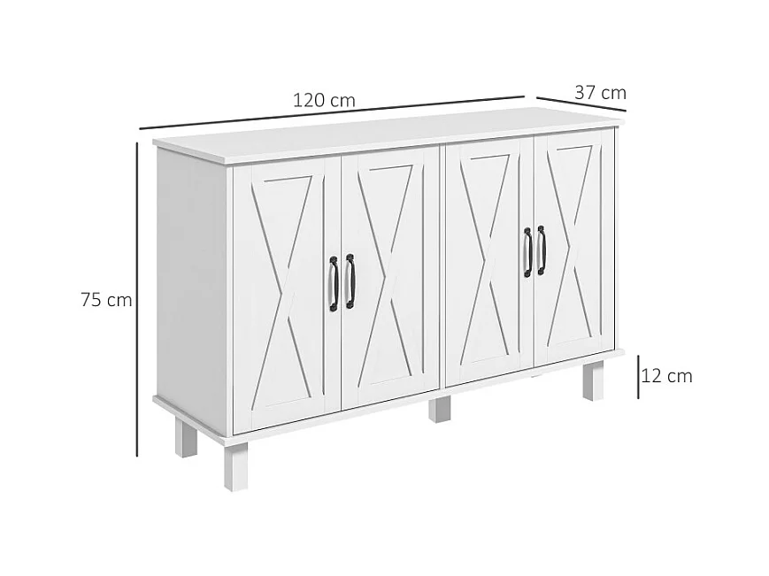 Buffet 4 portes 2 étagères style rural chic façades portes à croisillons blanc