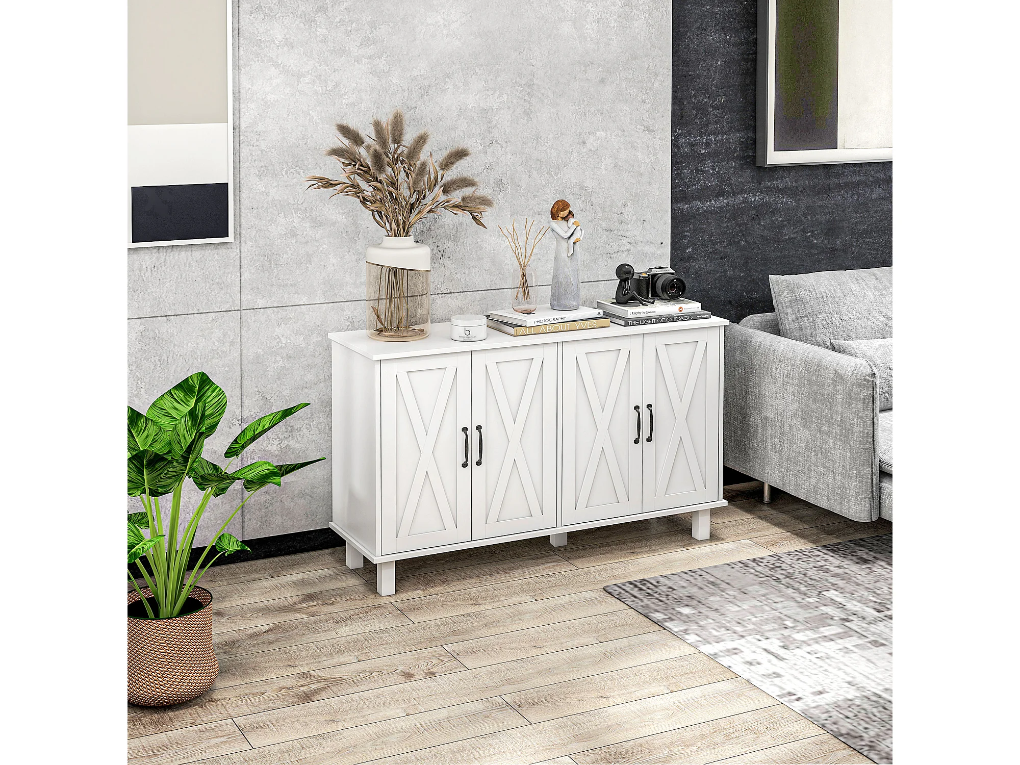 Buffet 4 portes 2 étagères style rural chic façades portes à croisillons poignées métal noir MDF blanc