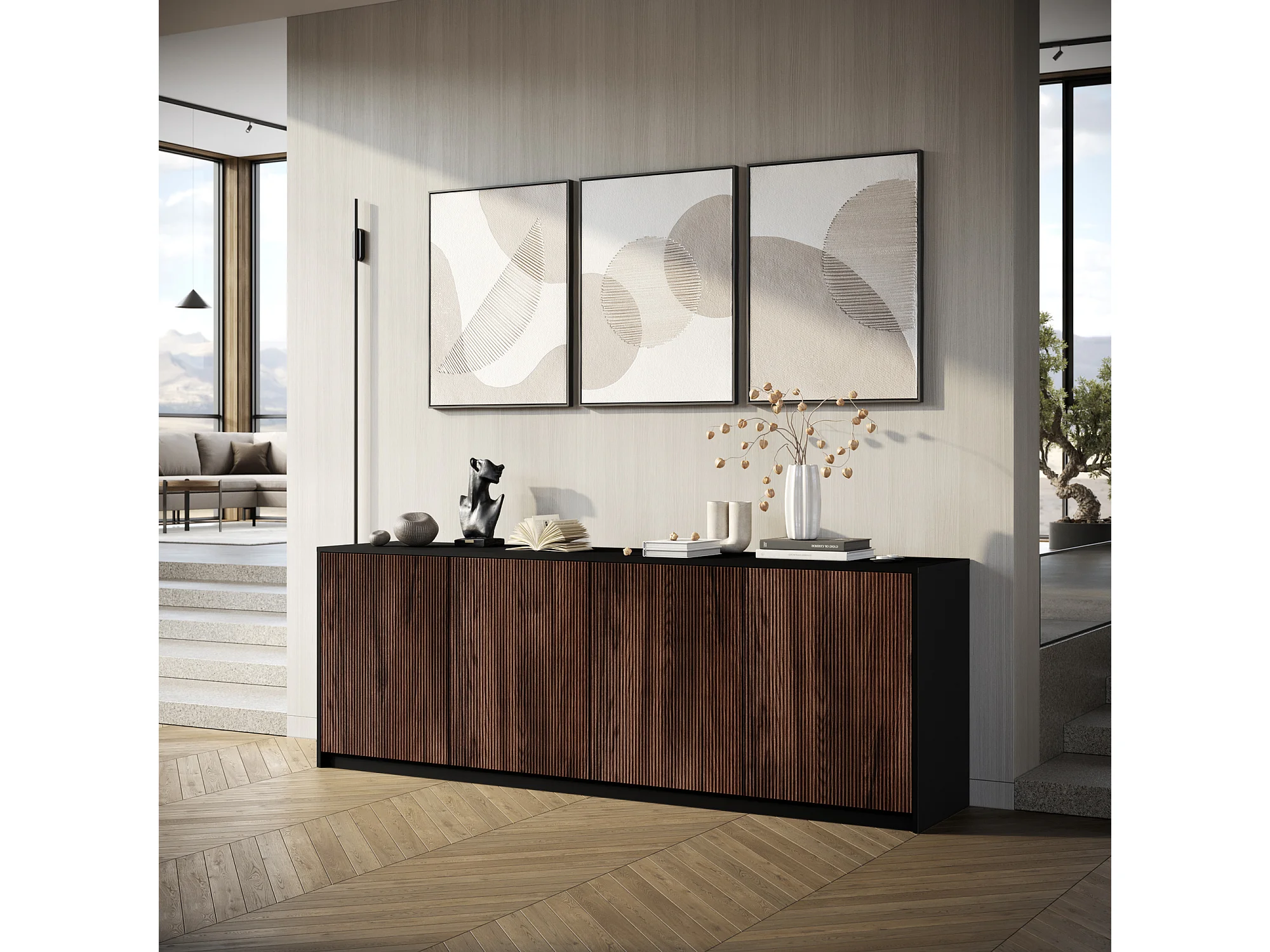 Buffet 4 portes BUDAPEST noir/chêne Rio