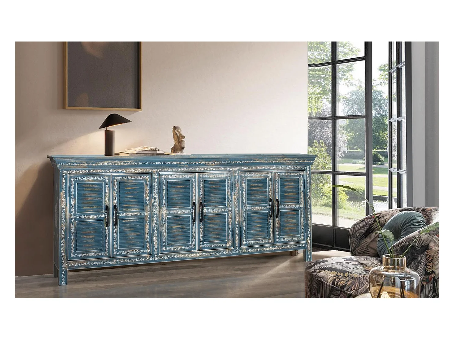 Buffet 6 portes fabriqué à la main en bois de manguier