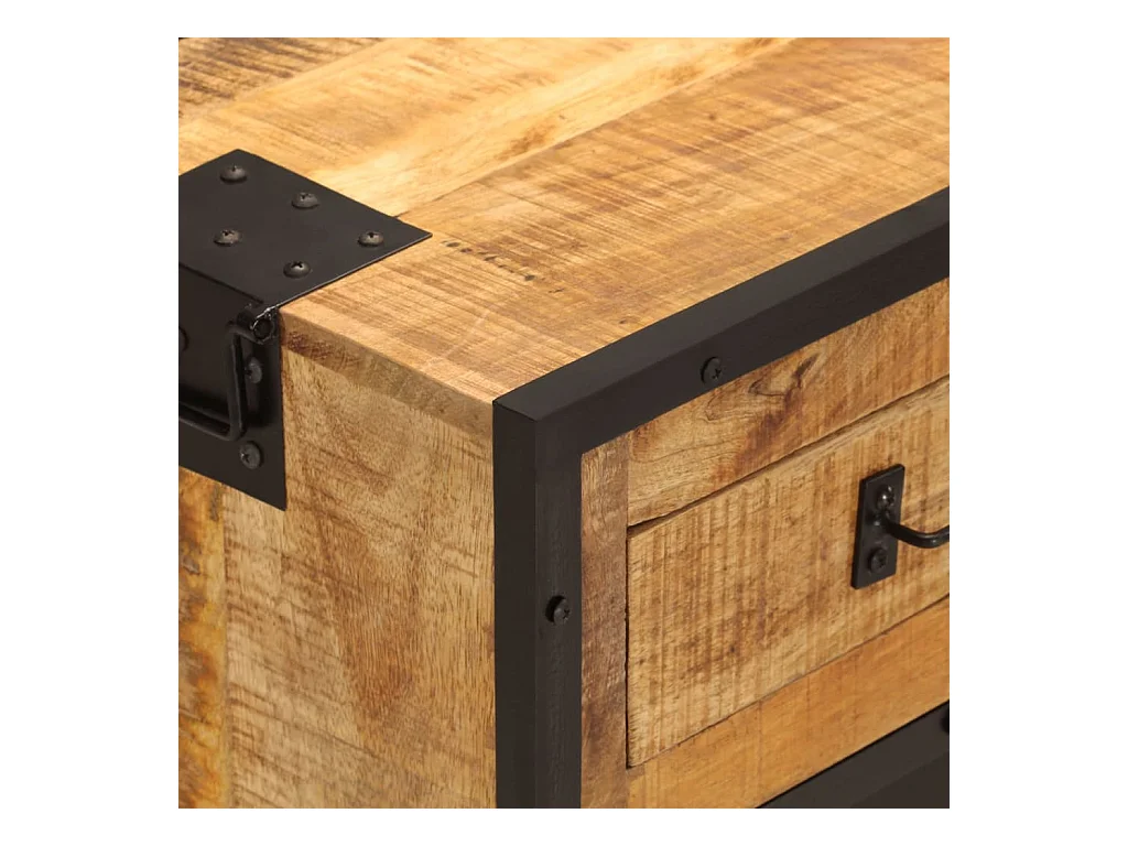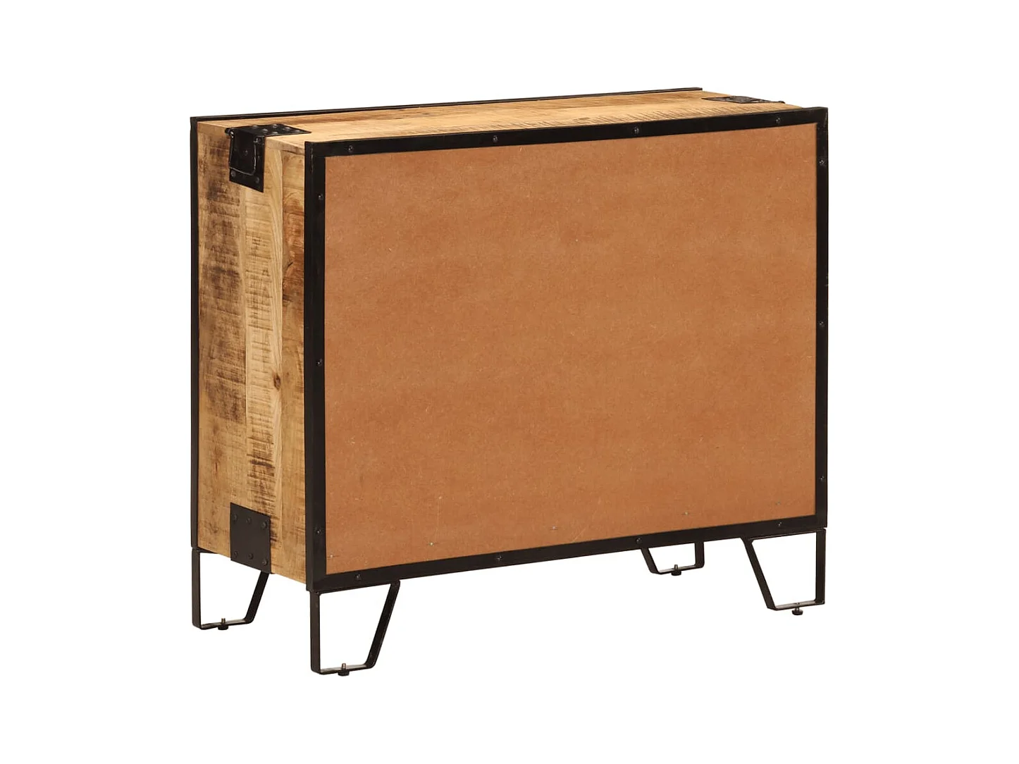 Buffet 80x31x66 bois de manguier brut massif et métal