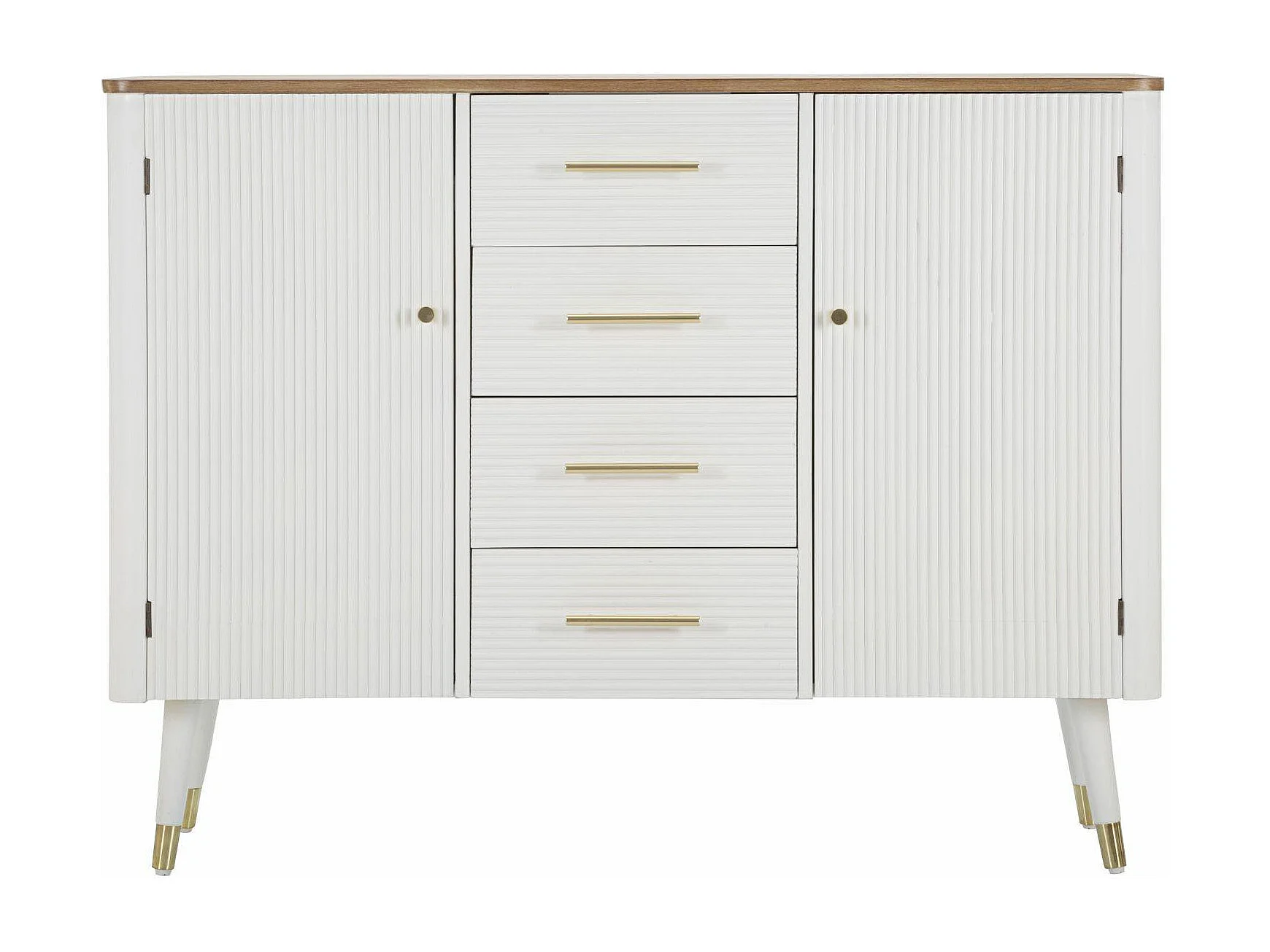 Buffet Acute, Buffet du salon, Commode de salon, Garde-manger de cuisine, 117x37 h90 cm, Blanc et marron