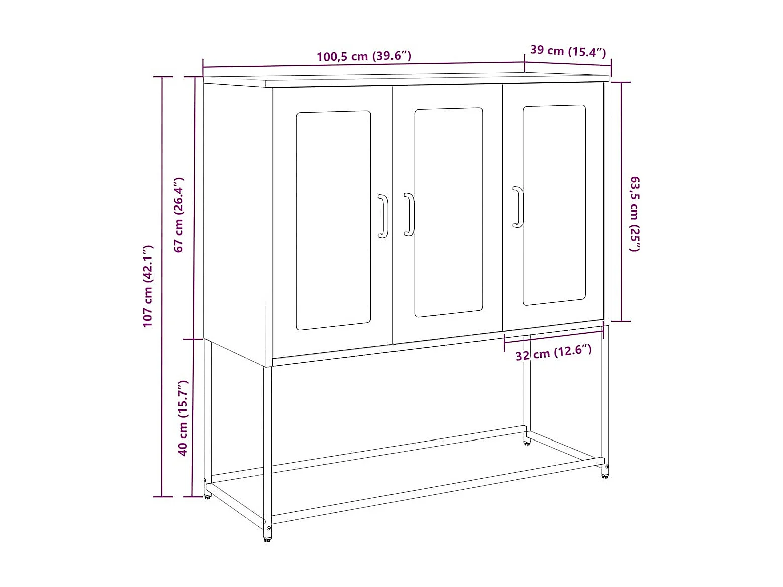 Buffet anthracite 67x39x107 cm acier