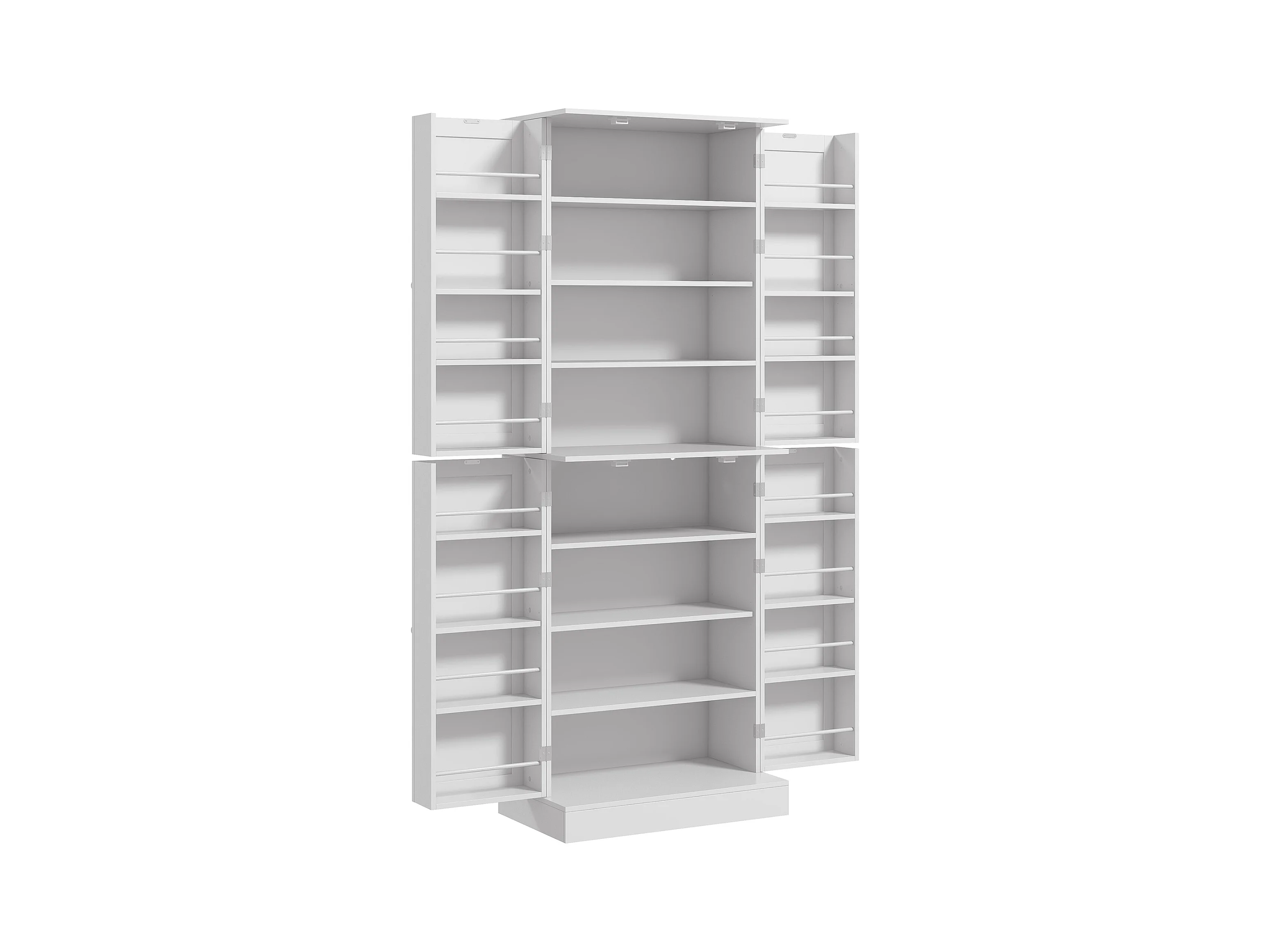 Buffet armoire de cuisine 2 portes 8 niveaux 16 porte-épices effet bois moulures blanc