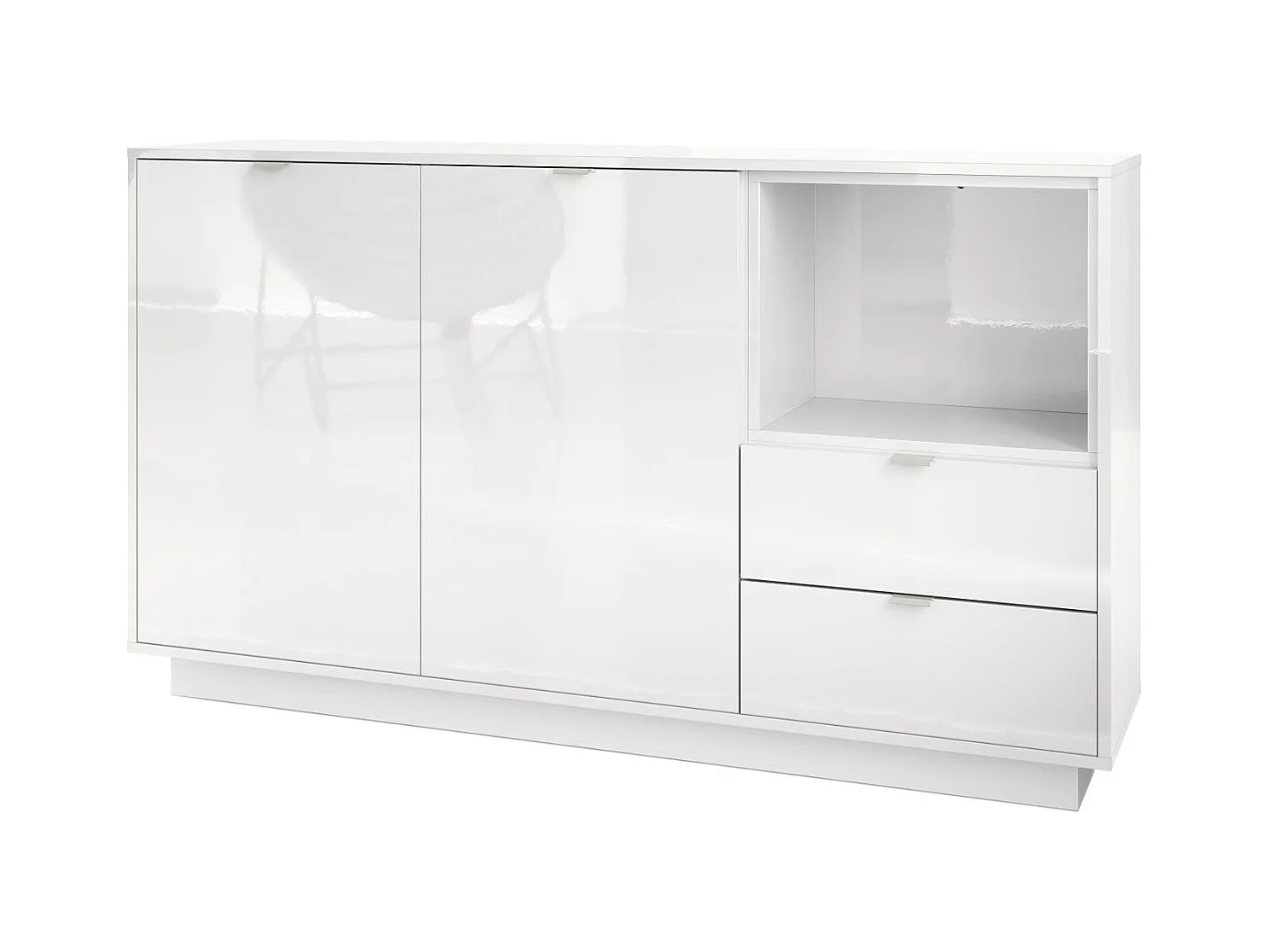 Buffet Armoire Metro, Corps en Blanc haute brillance / Façades en Blanc haute brillance avec une insertion en Blanc haute brillance
