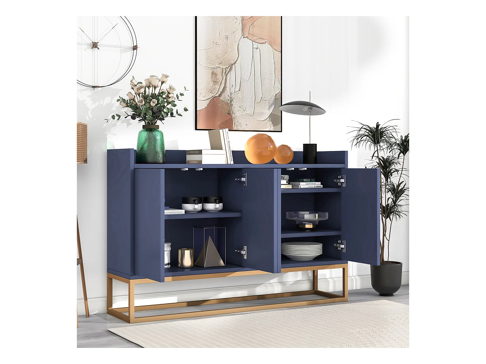 Buffet - Armoire Moderne avec 4 Portes - Buffet Salle a Manger - pour Salle à Manger, Salon, Cuisine - Blanc - 120 x 30 x 80 cm (Bleu Marine)