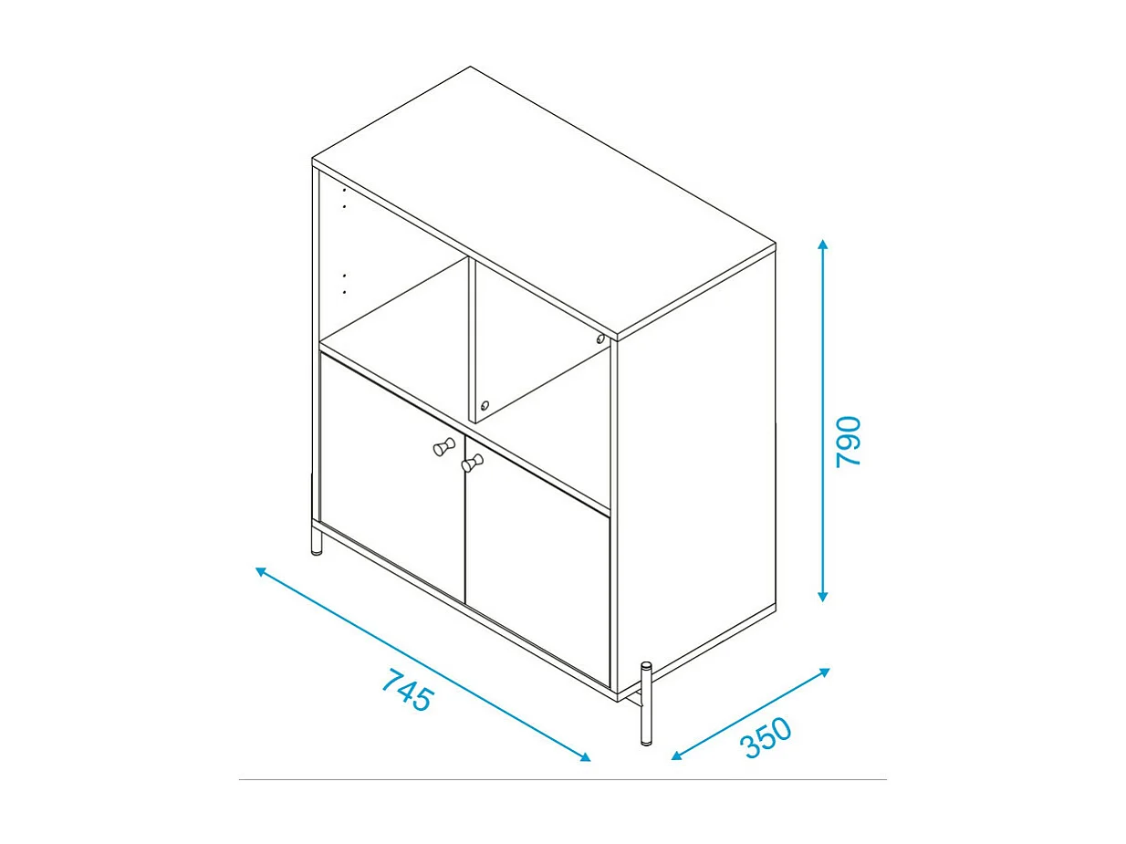 Buffet Armoire 2 Portes 4 Niches Noir sur PIeds Métal Ronds L 74.5 H 79 P 35 cm