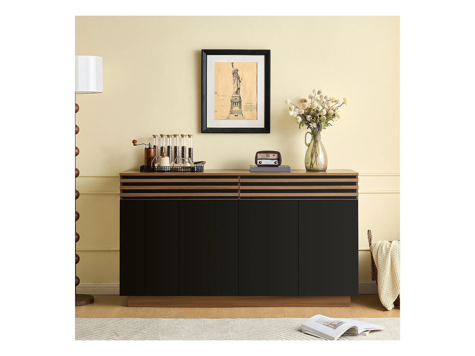 Buffet aspect bois avec 2 tiroirs et 4 portes - poursalon/salle à manger/cuisine - 150 x 40 x 85 cm - MDF - noir + marron