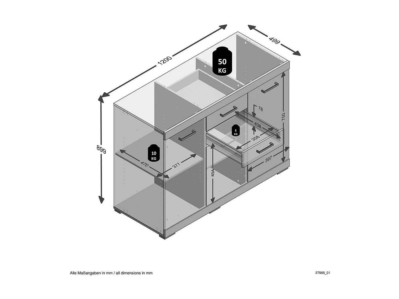Buffet avec 3 Portes et 2 Tiroirs L120cm - Bristol