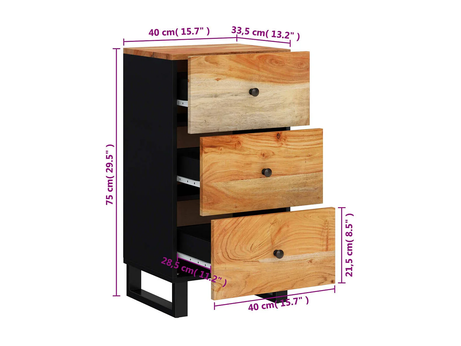 Buffet avec 3 tiroirs 40x33,5x75 cm bois massif d'acacia