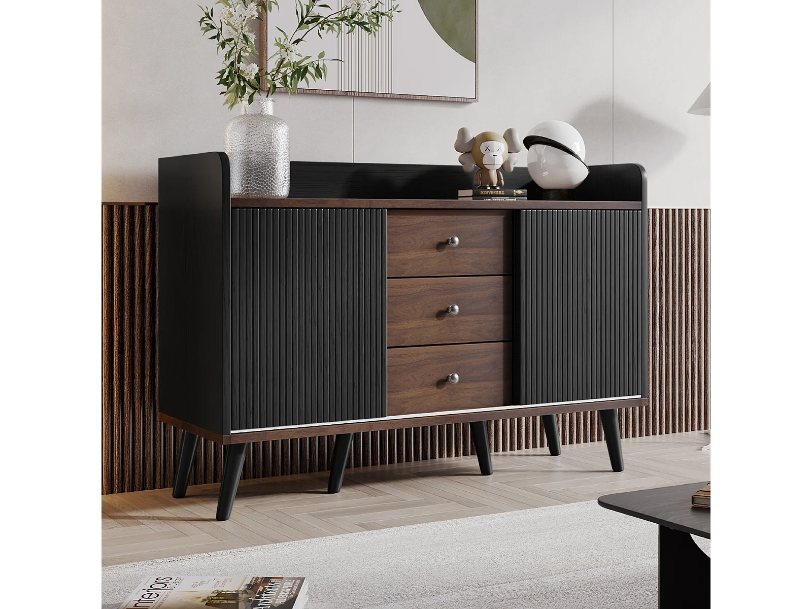 Buffet avec 3 tiroirs – Belle finition bois moderne avec étagères de rangement – Pour chambre et salon – H80 x L117,5 x P40 cm