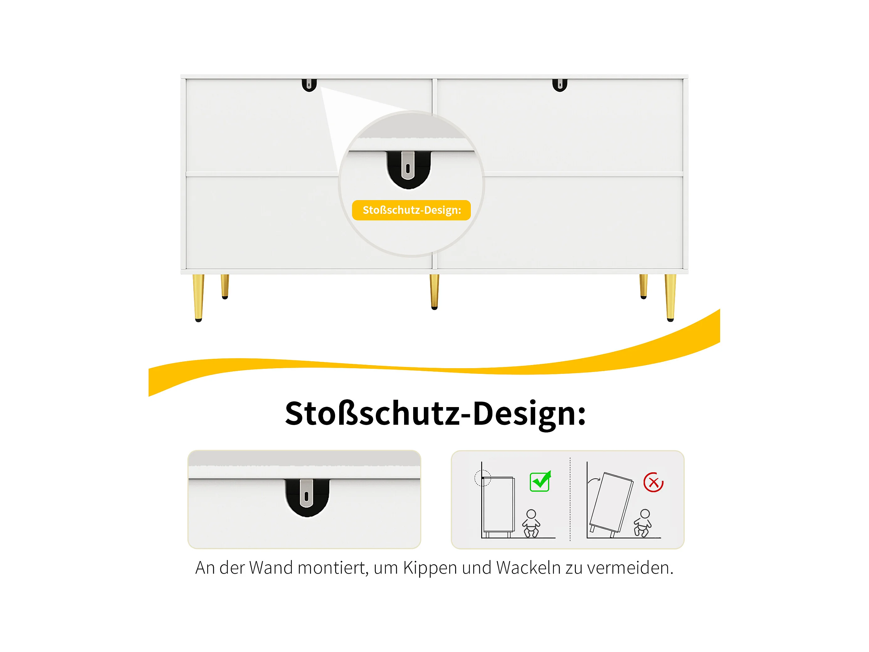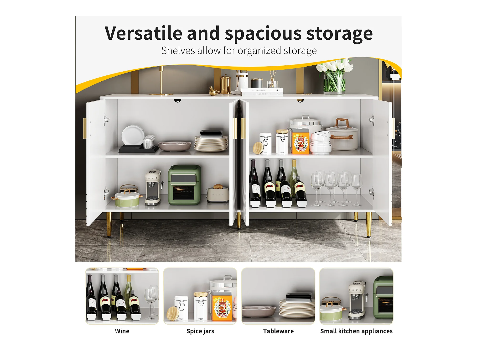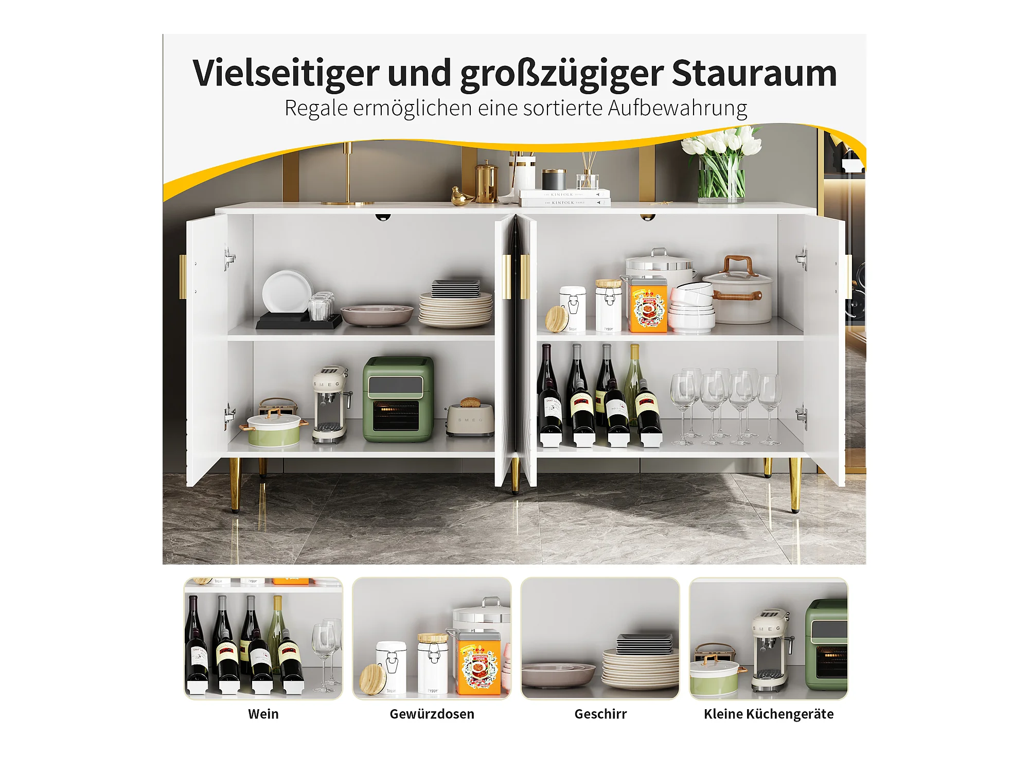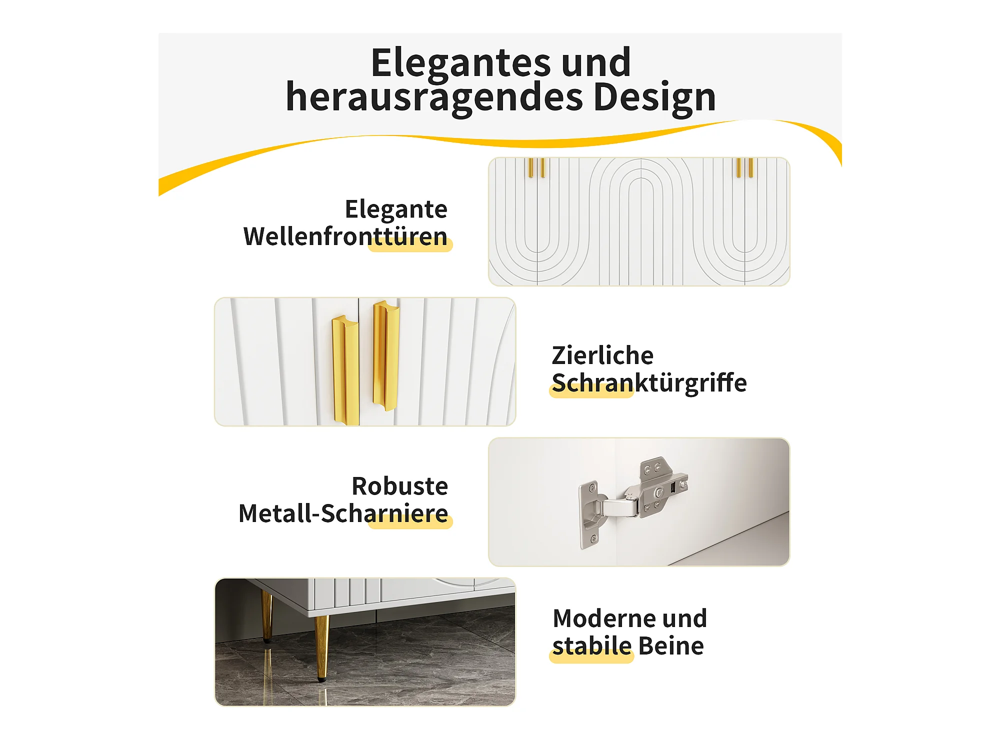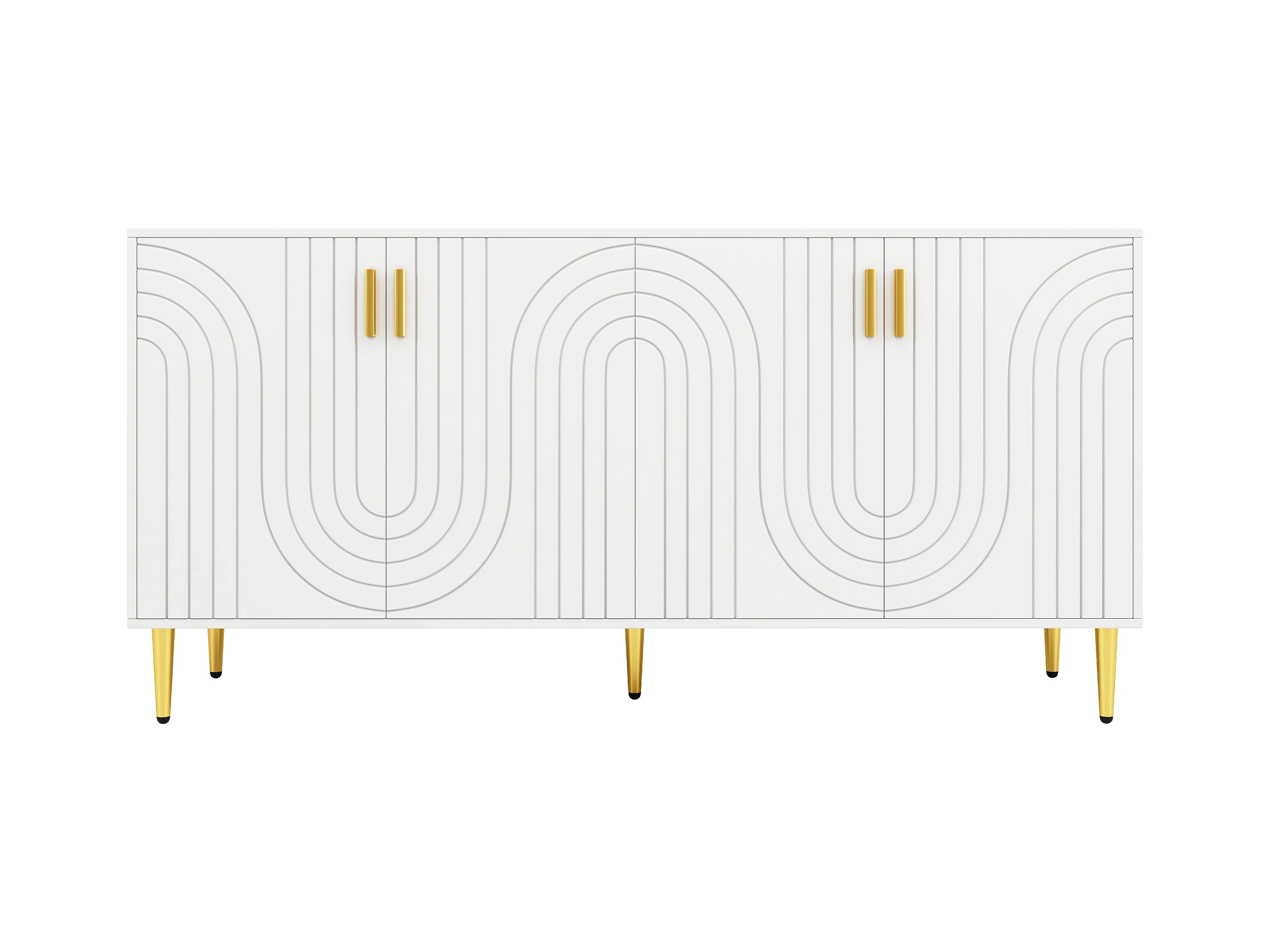 Buffet avec 4 portes - 152 x 40 x 75 cm - Bois MDF - Design de vagues - Blanc