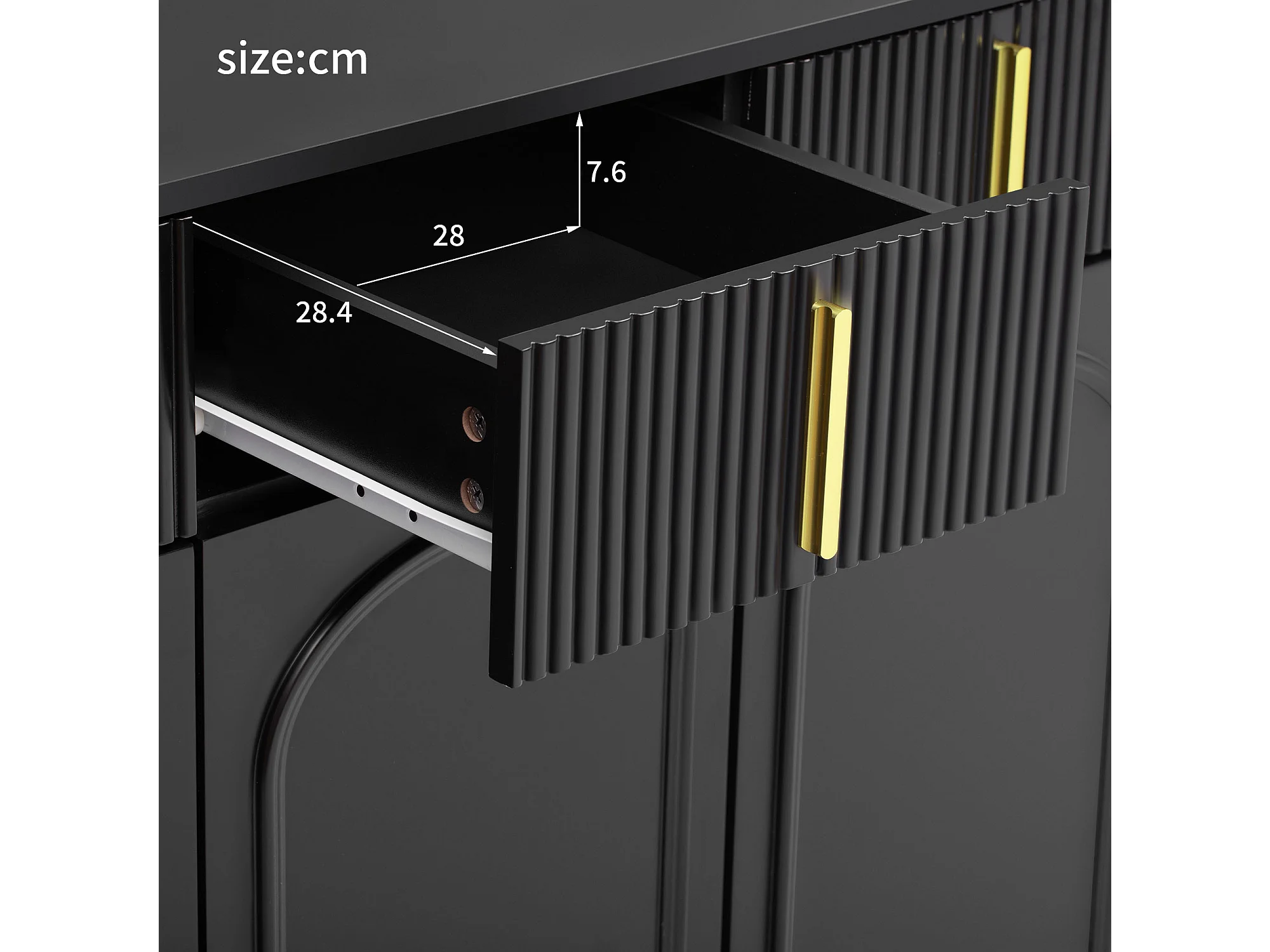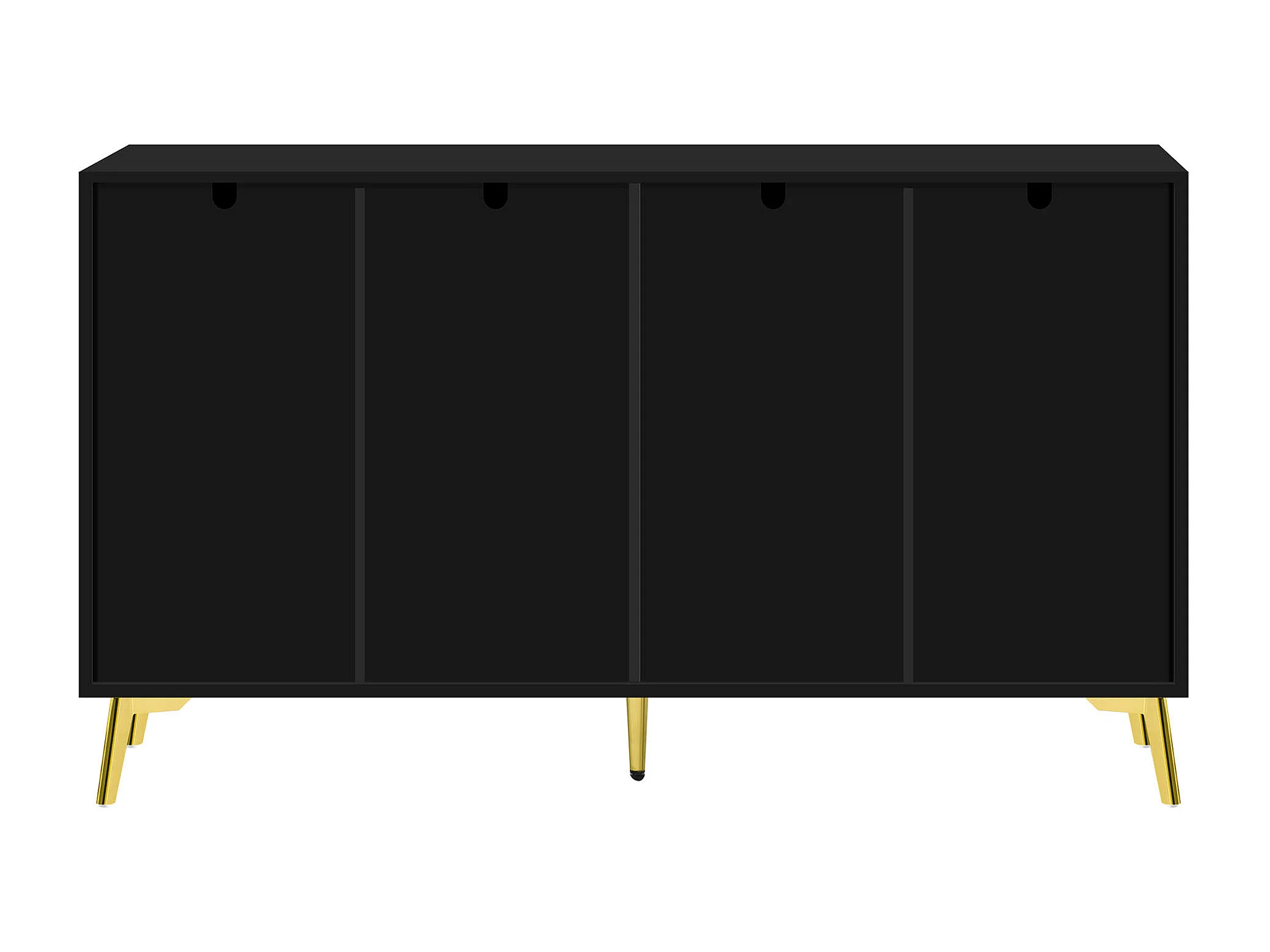 Buffet avec 4 tiroirs et 4 portes, armoire de buffet, avec poignées et pieds dorés, noir