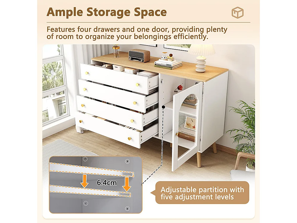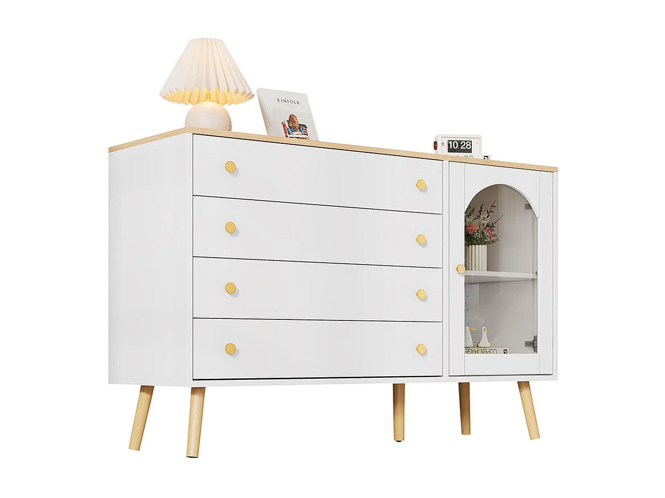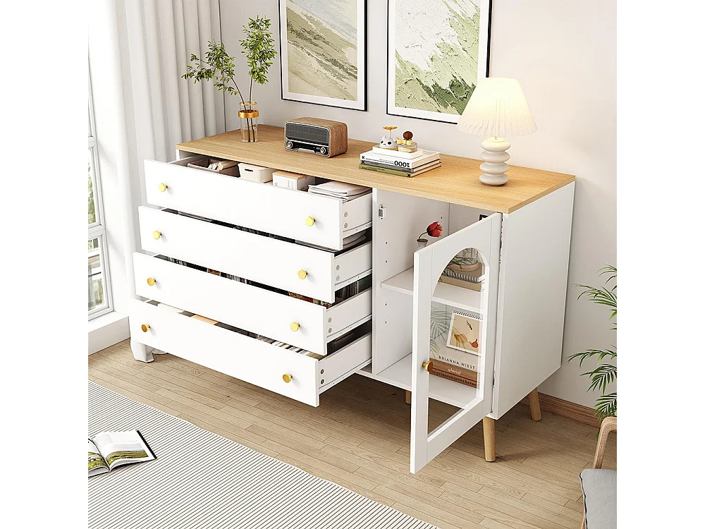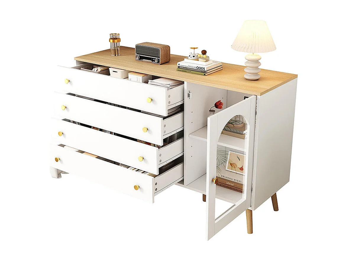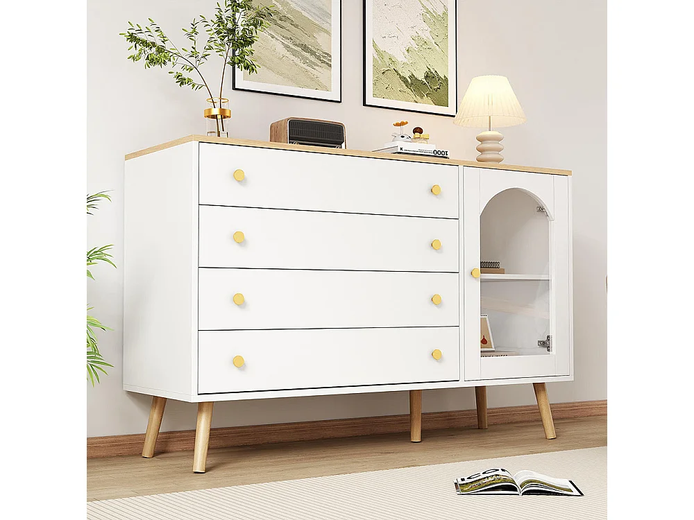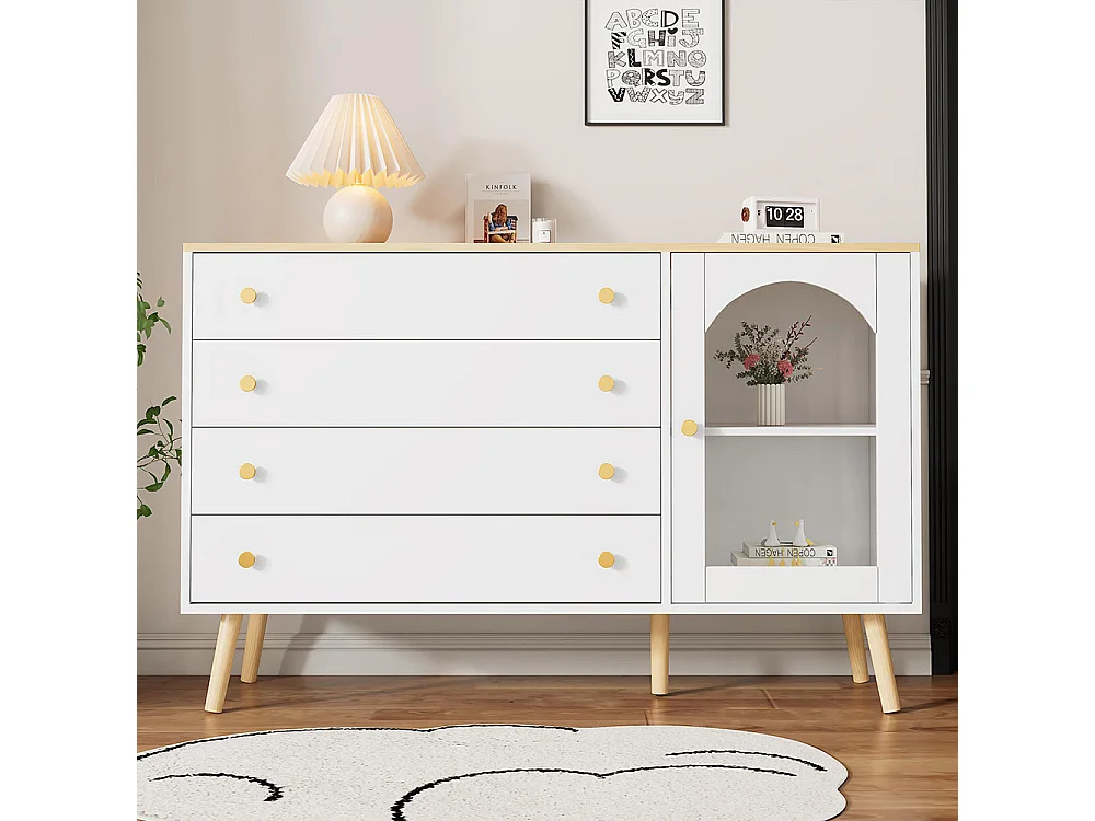 Buffet avec 4 tiroirs style moderne larges Commode à tiroirs blanc