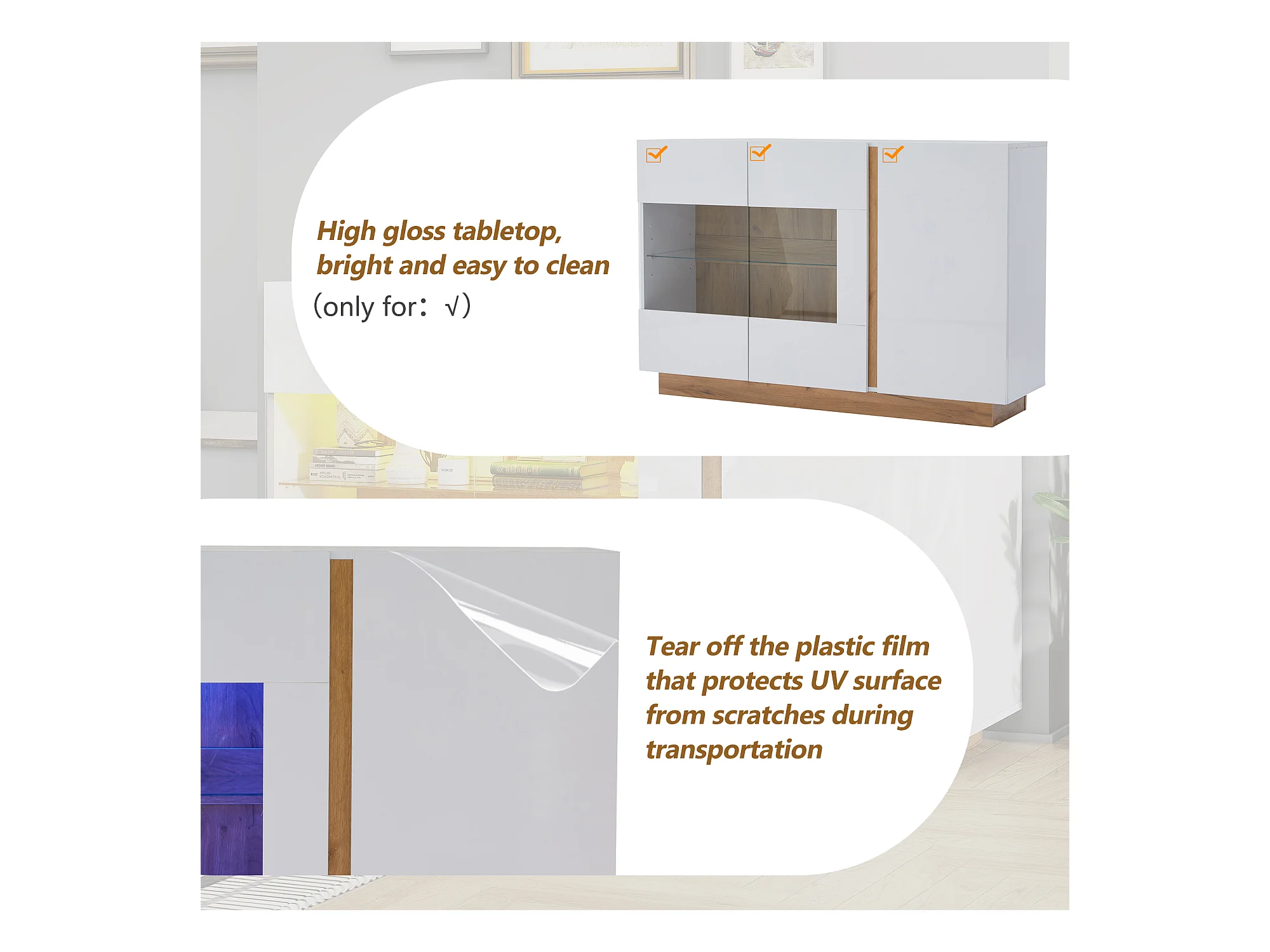 Buffet avec LED - 3 portes - en panneaux de particules - Blanc
