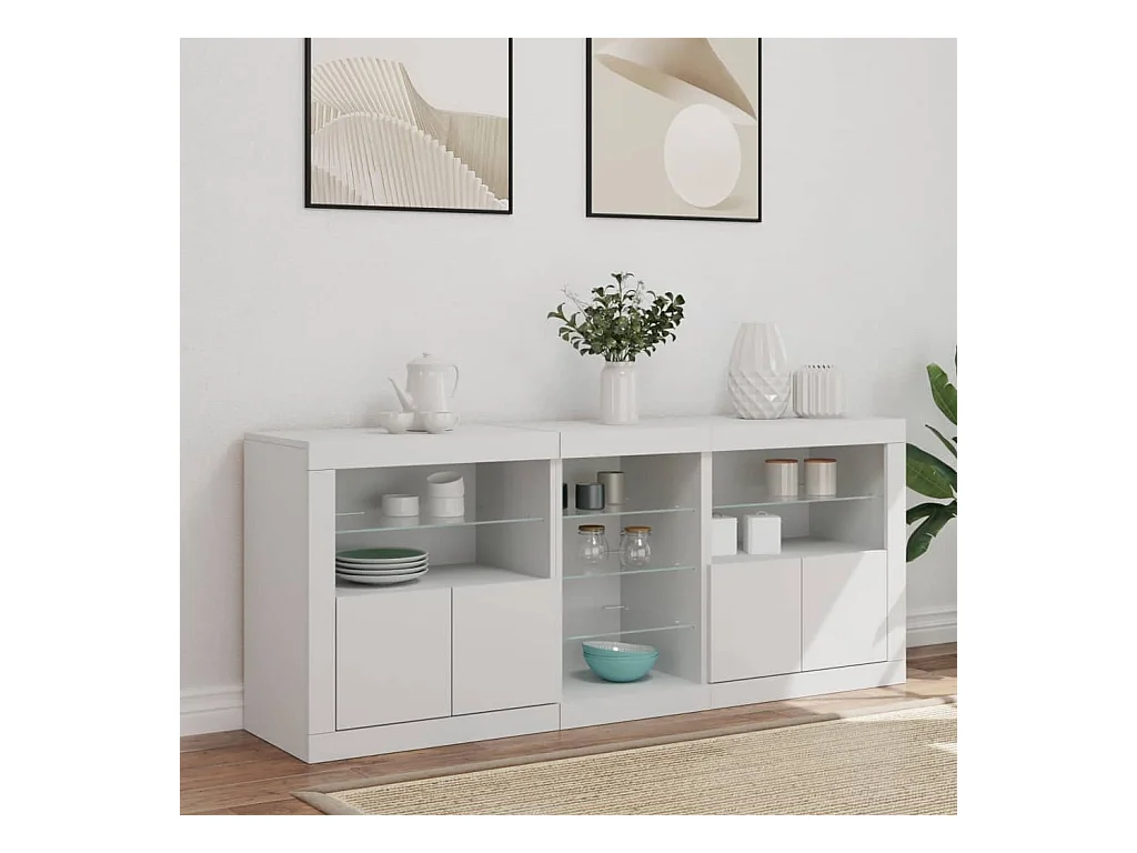 Buffet avec lumières LED blanc 162x37x67 cm FR25179
