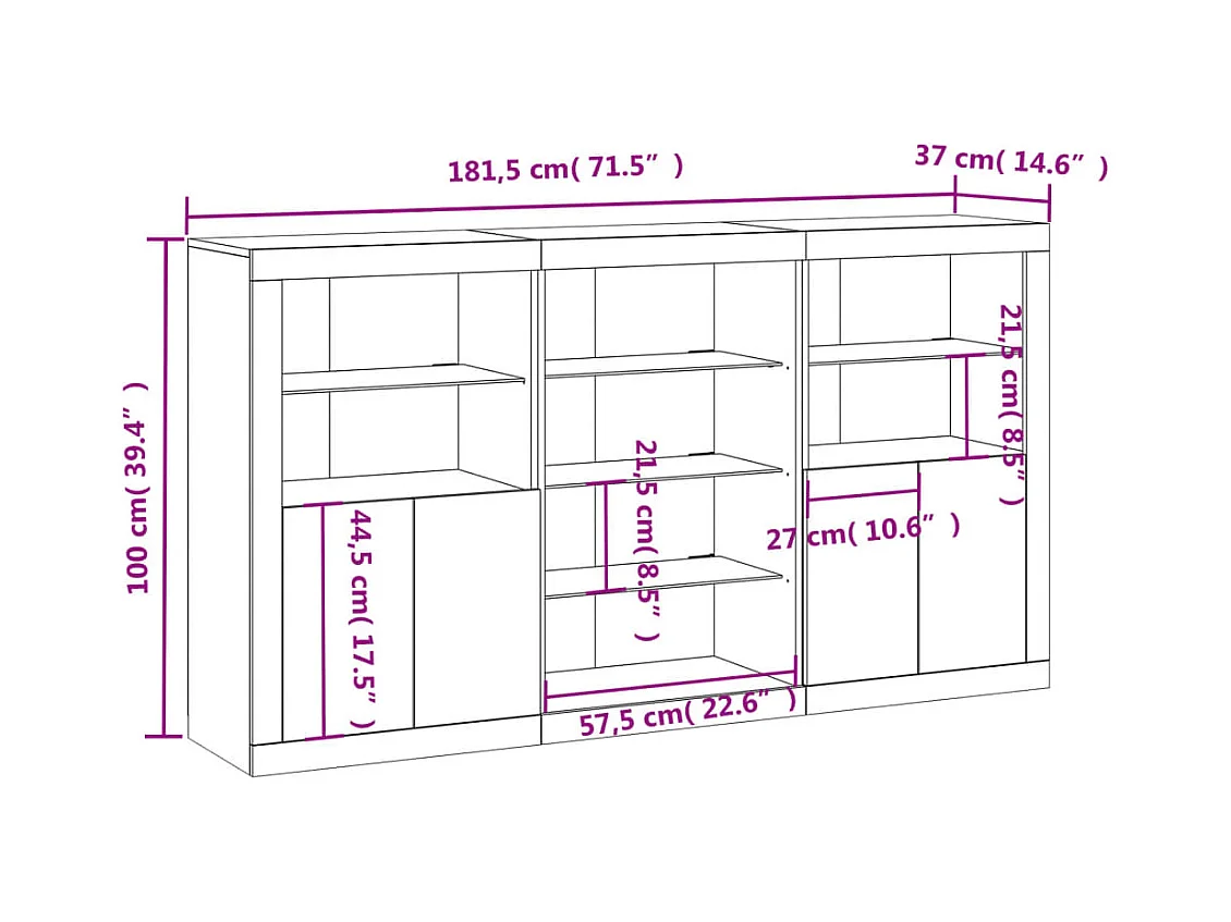 Buffet avec lumières LED blanc 181,5x37x100 cm