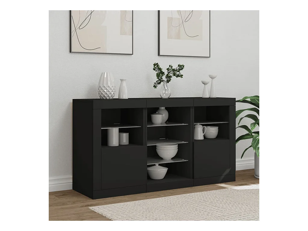 Buffet avec lumières LED noir 123x37x67 cm FR50067