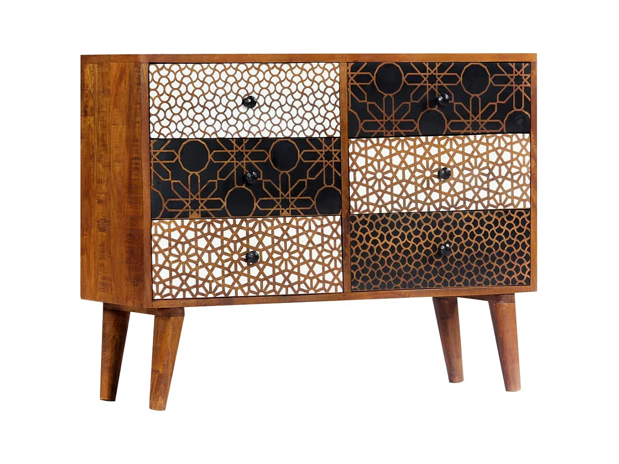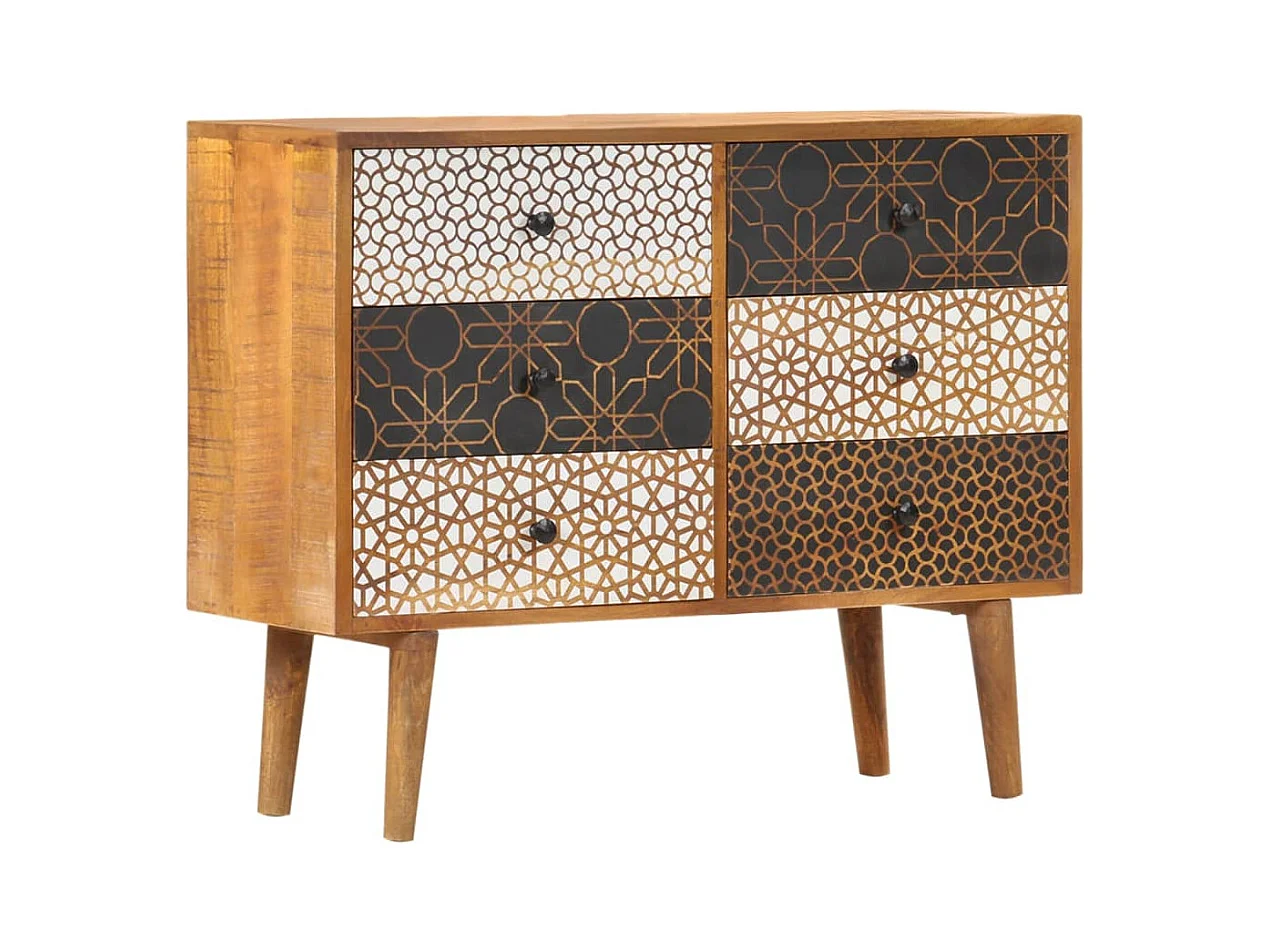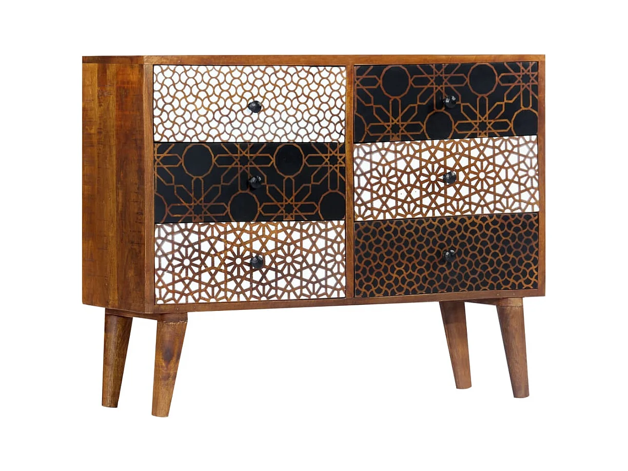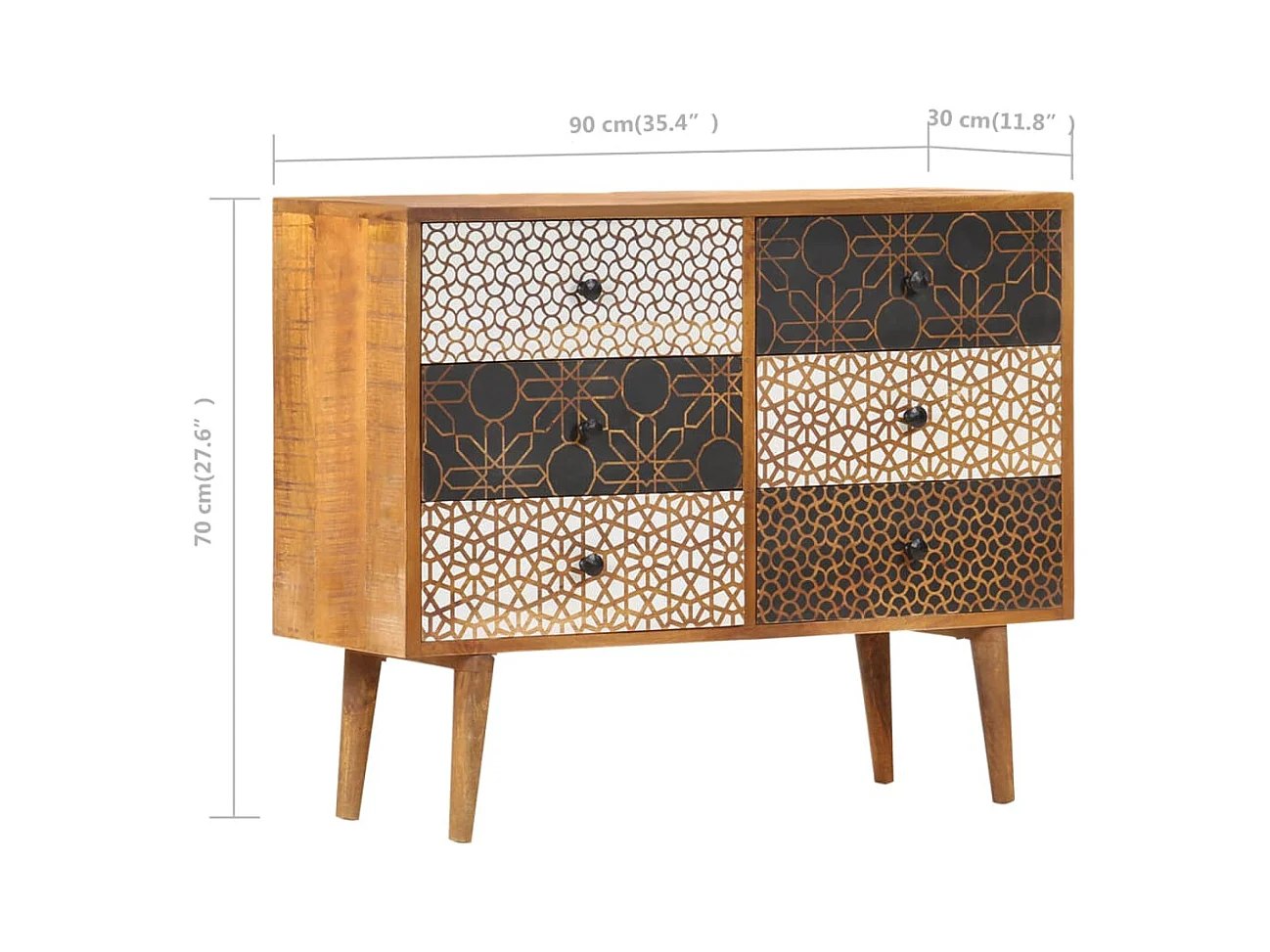 Buffet avec motif imprimé 90x30x70 cm Bois de manguier massif