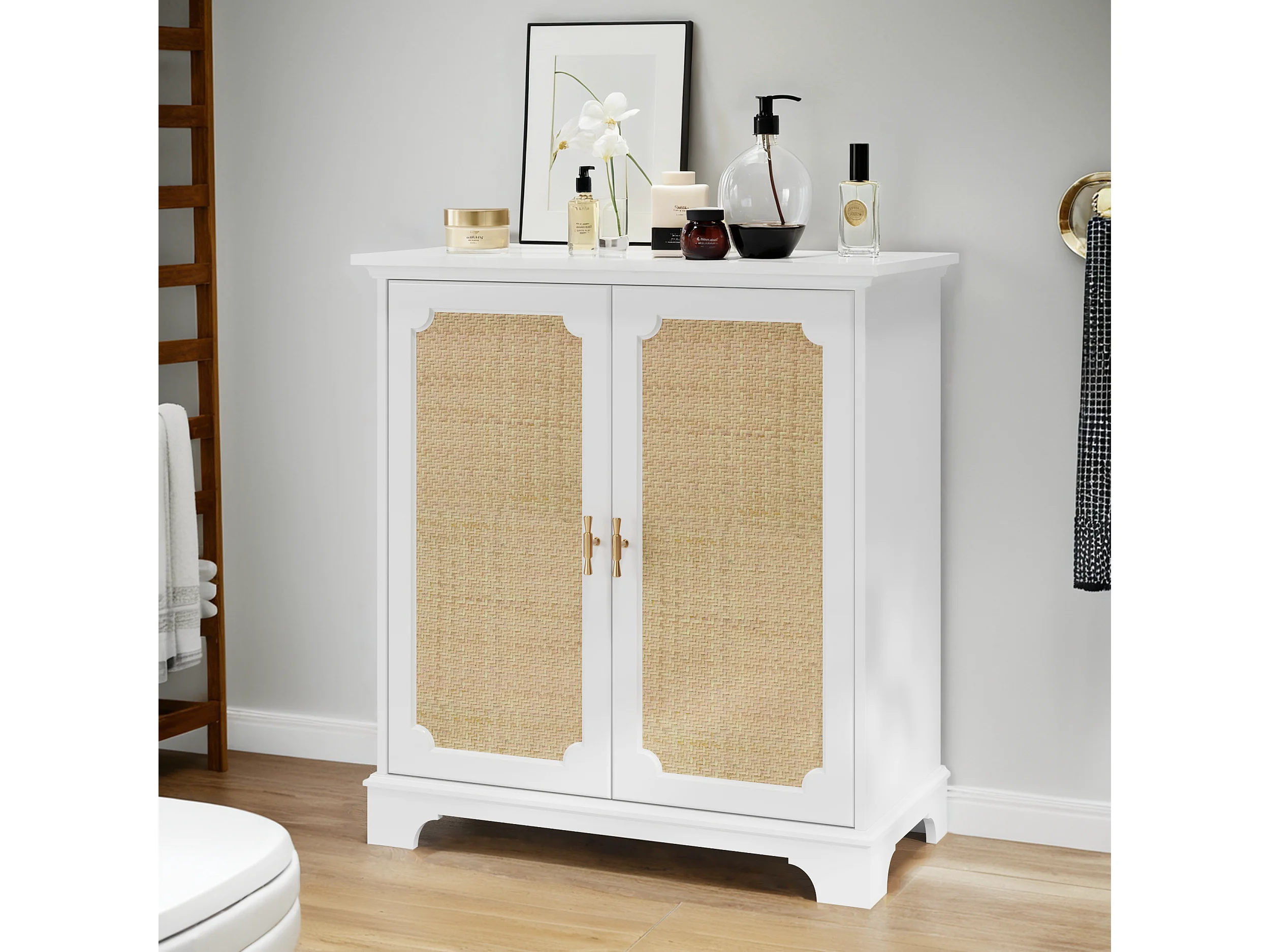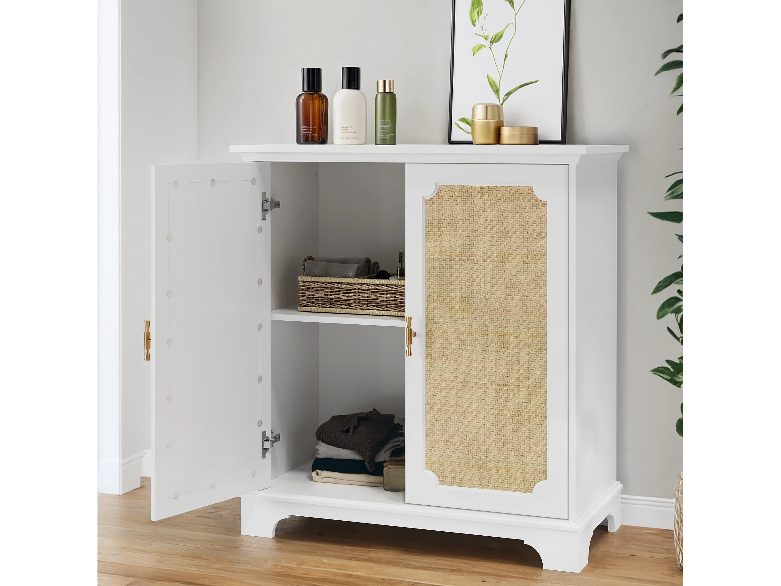Buffet avec portes en rattan, meuble de rangement, MDF, blanc (80x38x86 cm)