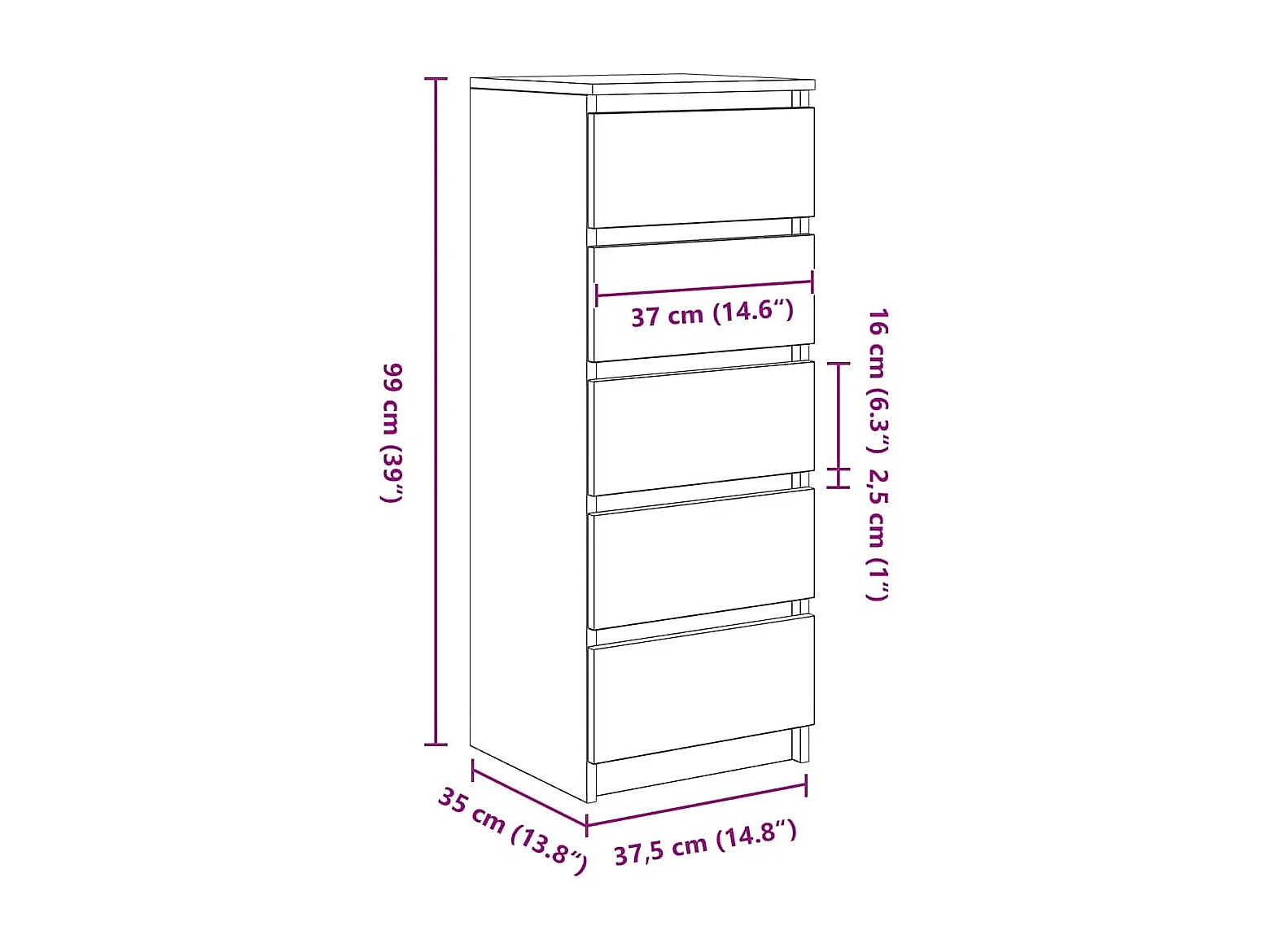Buffet avec tiroirs chêne marron 37,5x35x99cm bois d'ingénierie
