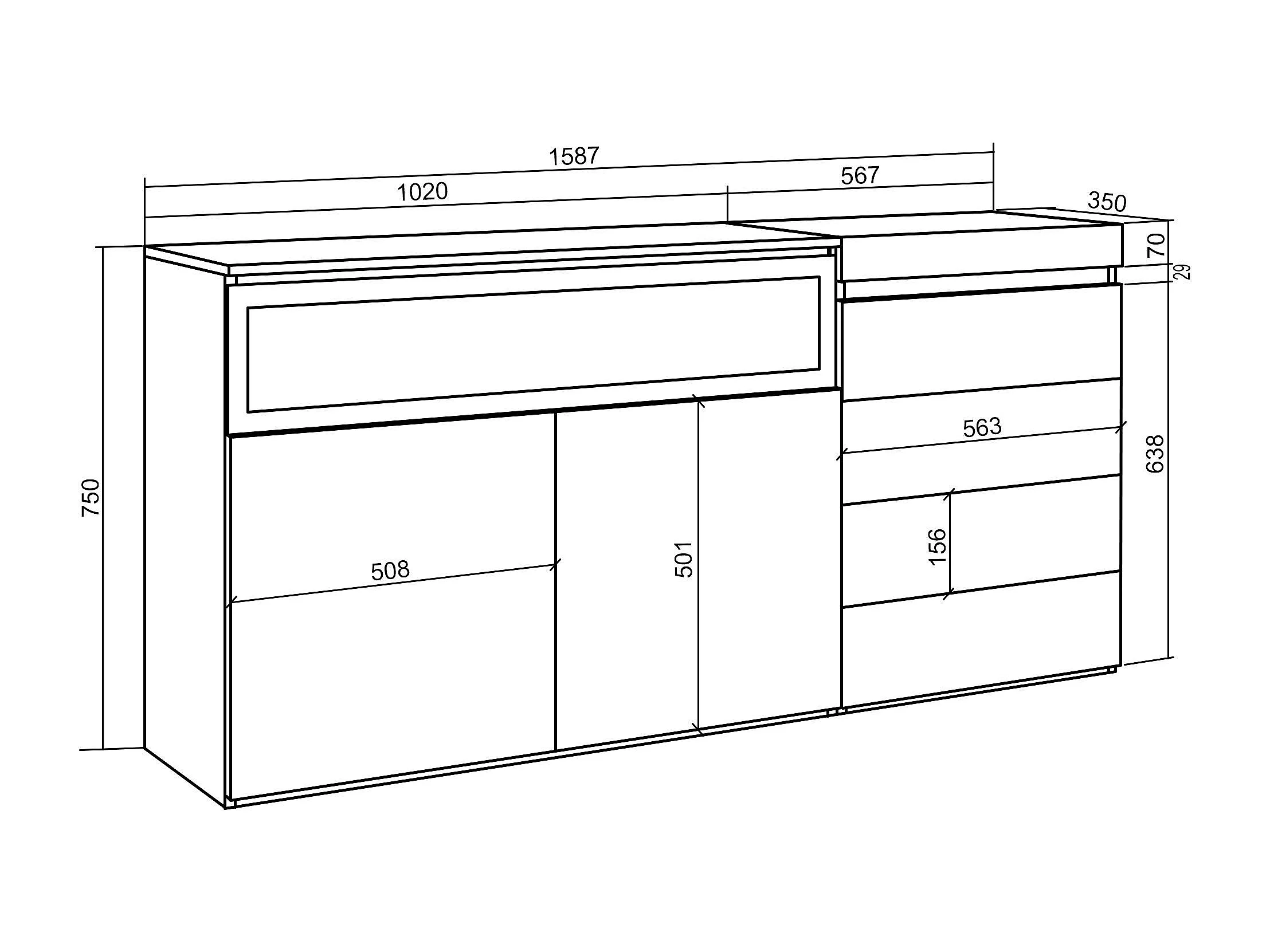 Buffet, Bahut, 157x35x75 cm, Chambre à coucher, pièce, Cheminée électrique, Commode, Buffet, Ciment