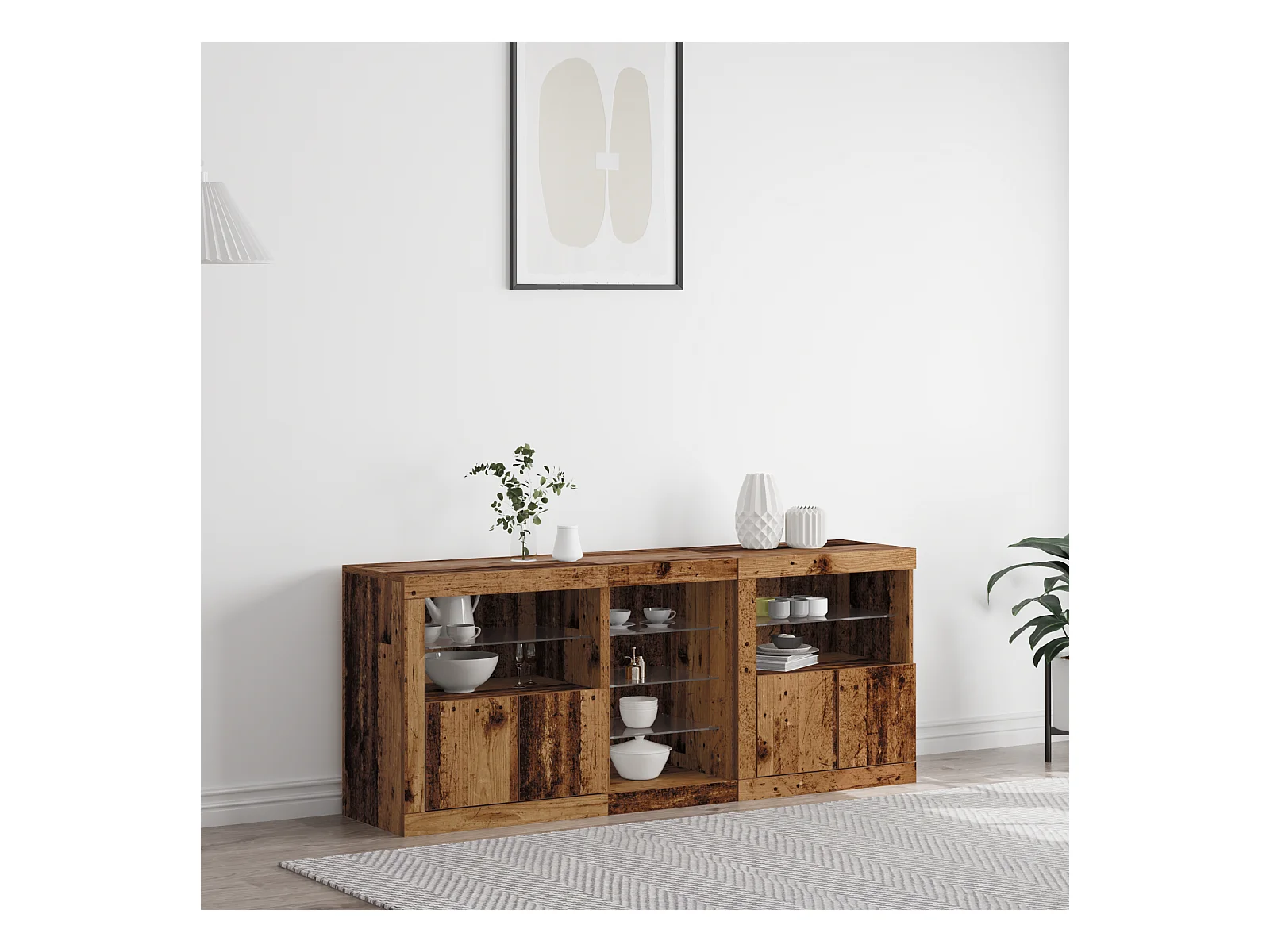 Buffet | Bahut | Meuble de rangement avec éclairage LED Bois ancien 162x37x67 cm Bois reconstitué