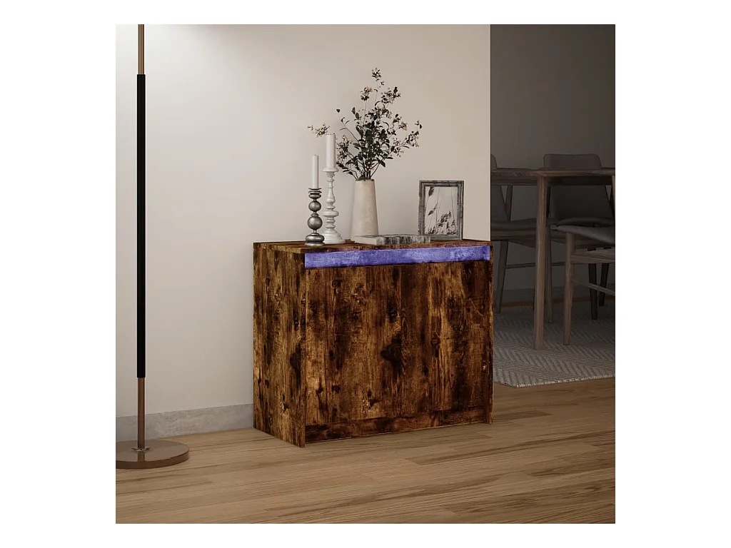 Buffet | Bahut | Meuble de rangement avec LED chêne fumé 72x34x61 cm bois d'ingénierie