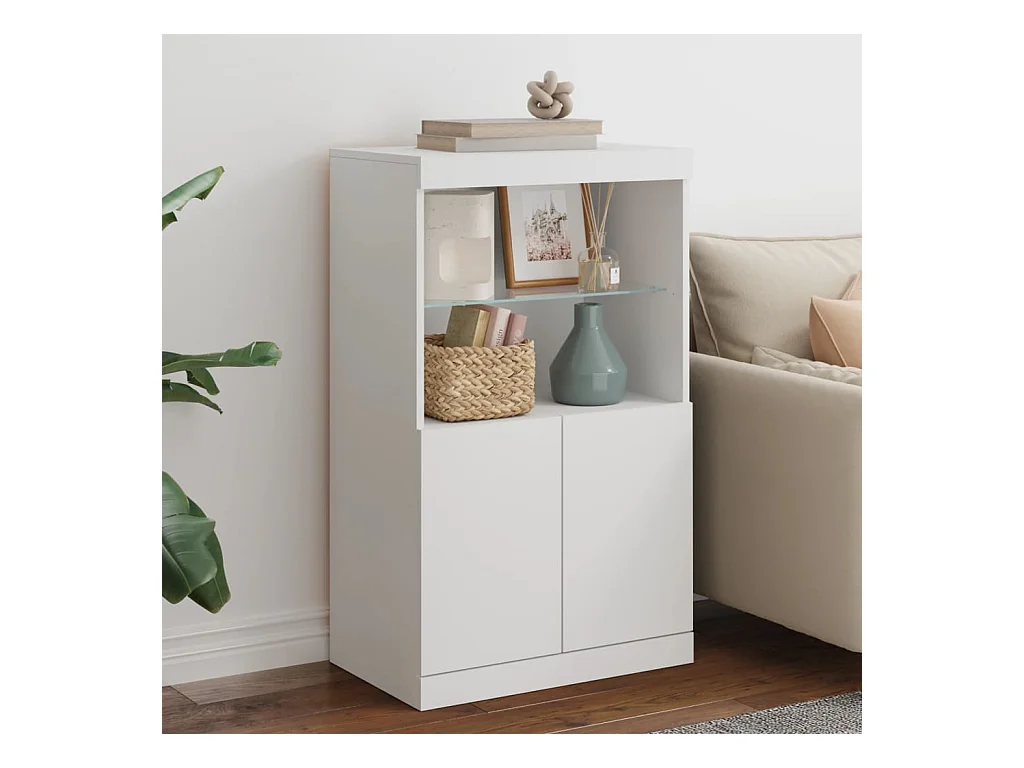 Buffet | Bahut | Meuble de rangement avec lumières LED blanc 60,5x37x67 cm