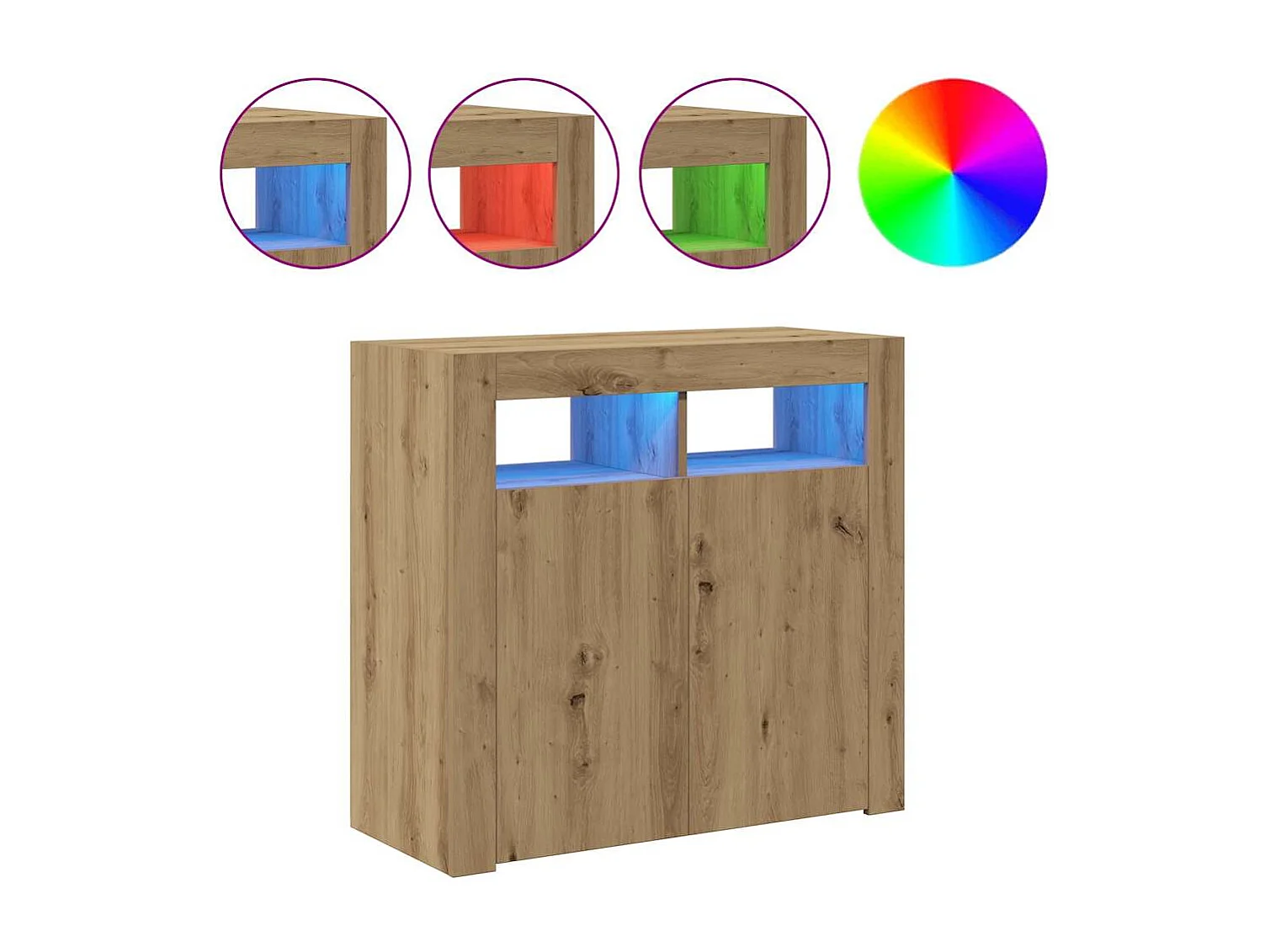 Buffet | Bahut | Meuble de rangement avec lumières LED chêne sonoma 80x35x75 cm