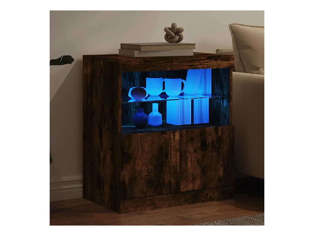 Buffet | Bahut | Meuble de rangement avec lumières LED chêne fumé 60x37x67 cm