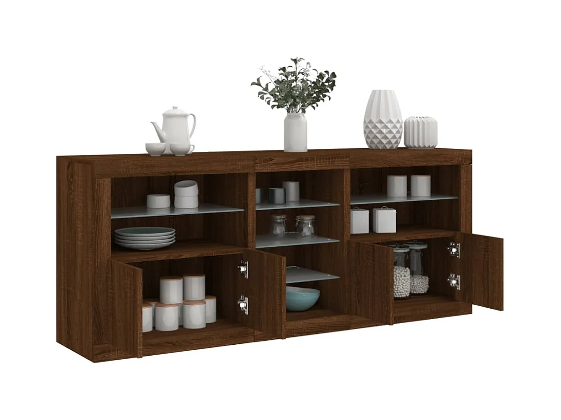 Buffet | Bahut | Meuble de rangement avec lumières LED chêne marron 162x37x67 cm