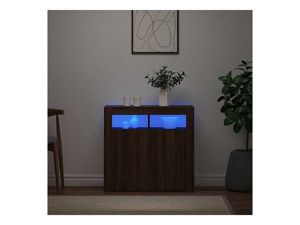 Buffet avec lumières LED chêne marron 80x35x75 cm