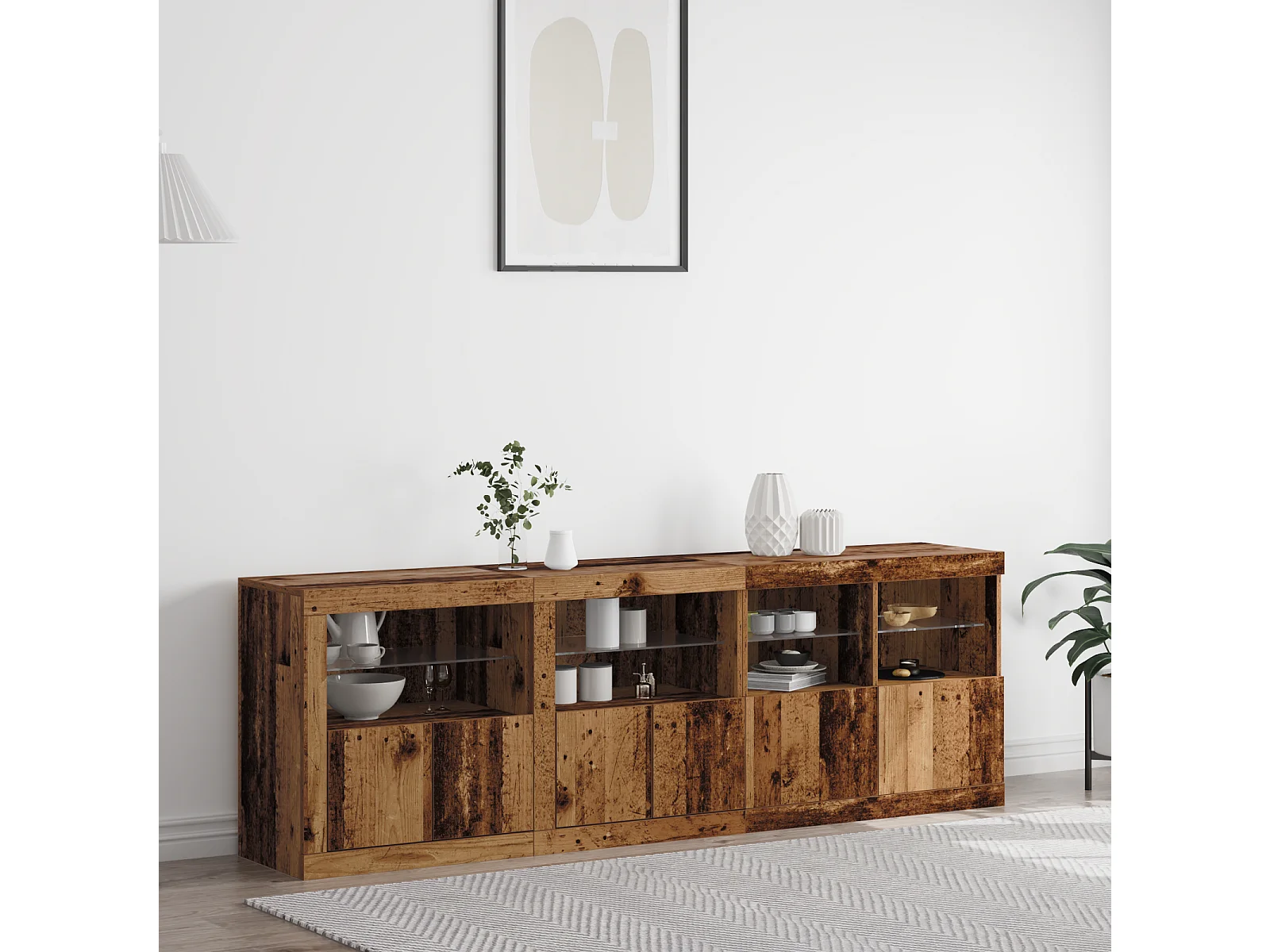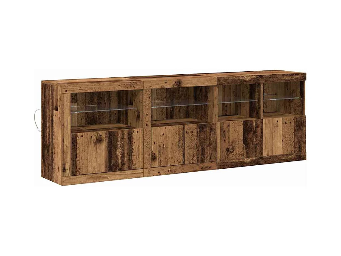 Buffet | Bahut | Meuble de rangement avec lumières LED en vieux bois 202x37x67 cm bois reconstitué