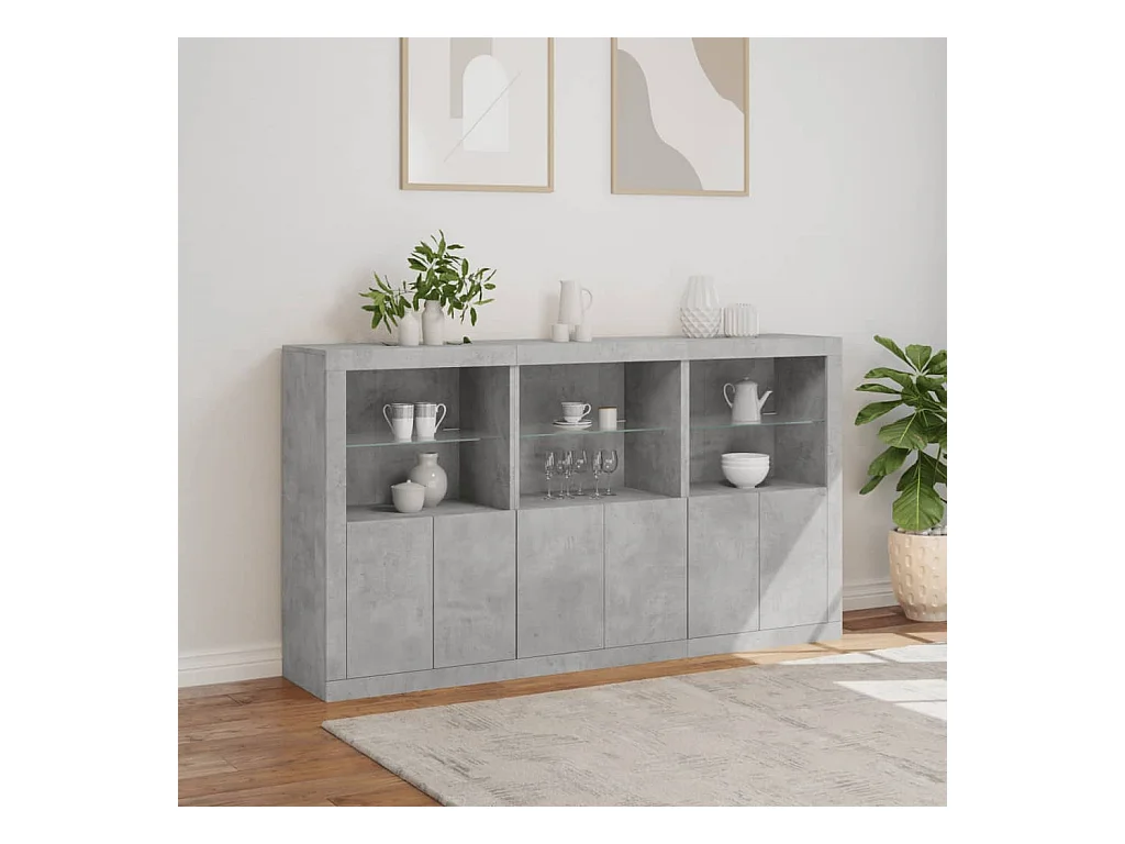 Buffet | Bahut | Meuble de rangement avec lumières LED gris béton 181,5x37x100 cm