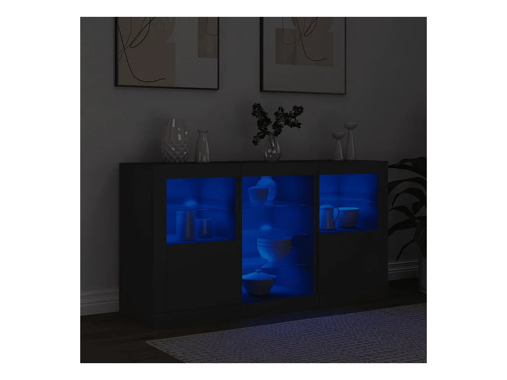 Buffet | Bahut | Meuble de rangement avec lumières LED noir 123x37x67 cm
